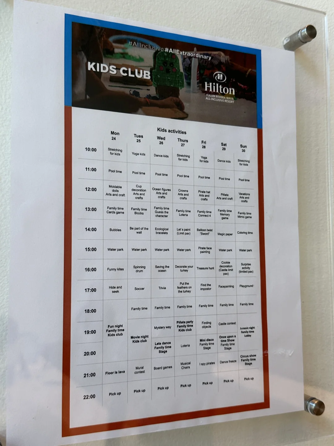 🧒kids club活动很丰富,提供全托管,如果小孩愿意的话,家长可以直接丢过去就放飞了。可惜我家咖喱根本不愿意跟staff,全包酒店花钱花了个寂寞,还是自己在酒店带娃。图1️⃣2️⃣