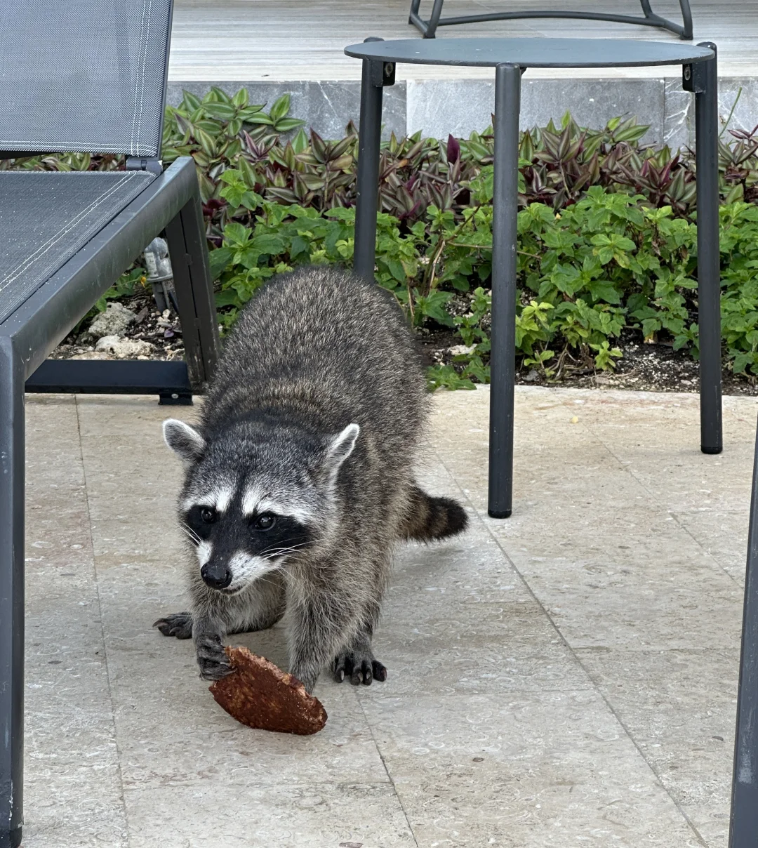 🦝酒店里有很多小动物,阳台外面花园里寄居蟹各种爬,走廊能遇到偷吃的白鼻浣熊,海边餐厅能遇到黑刺尾鬣蜥,沙滩虽小,也能在岸边捡到尖吻尖鼻鲀。