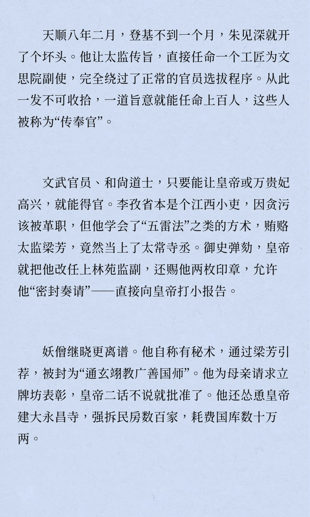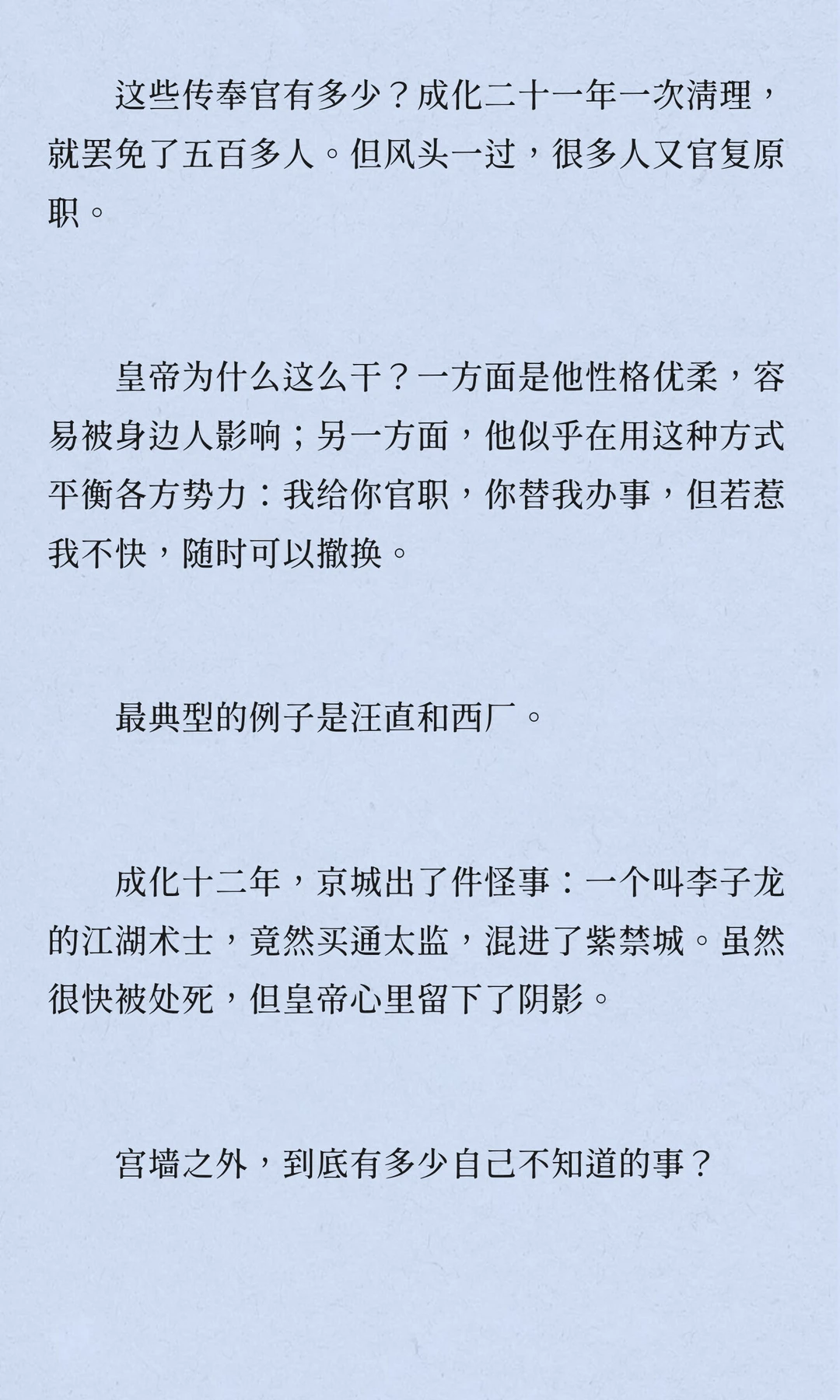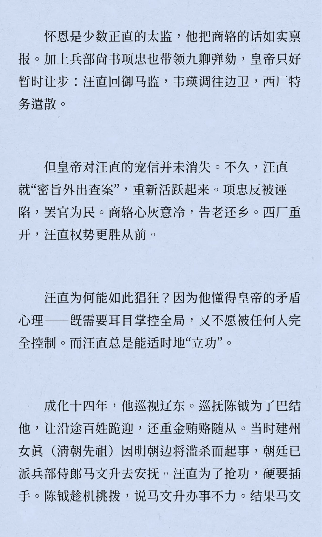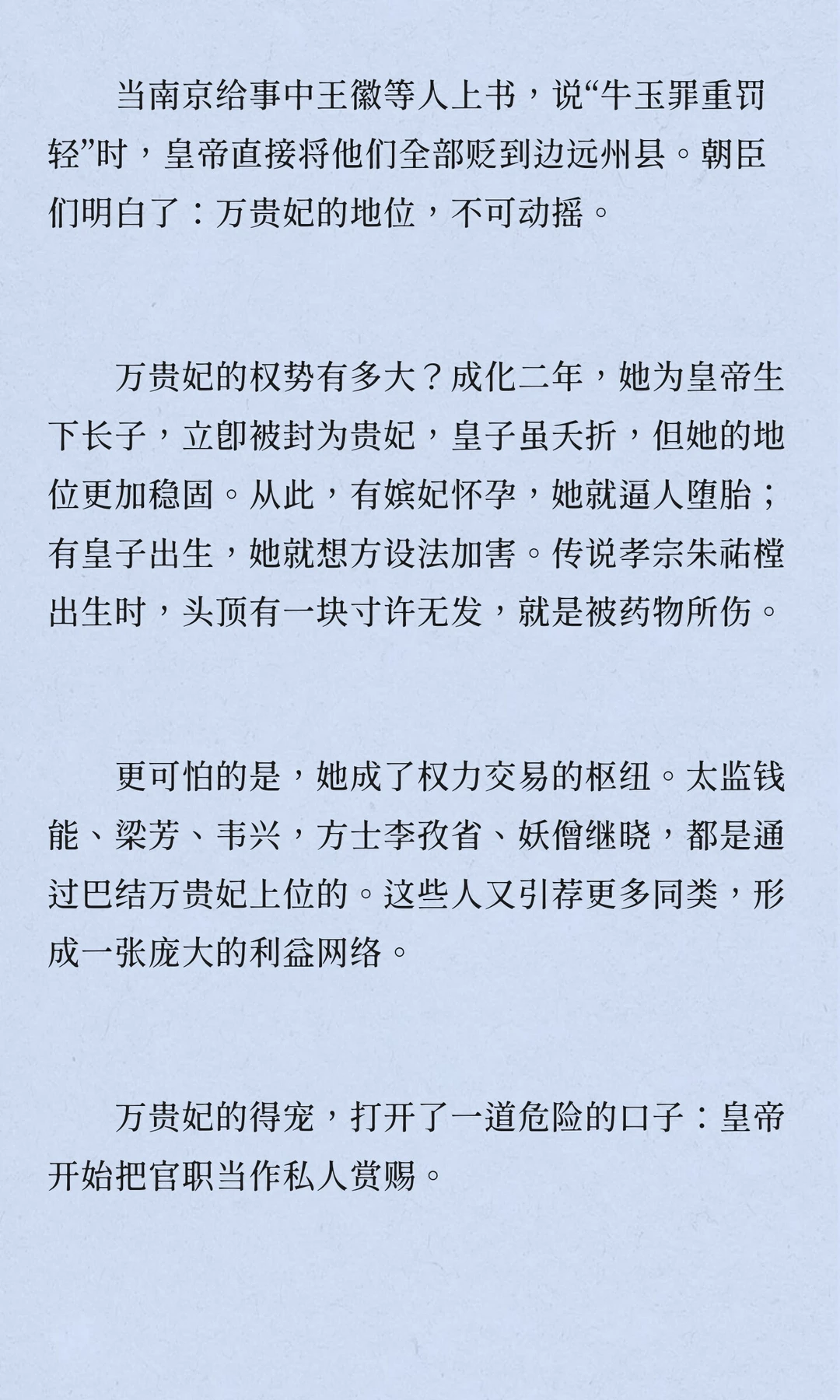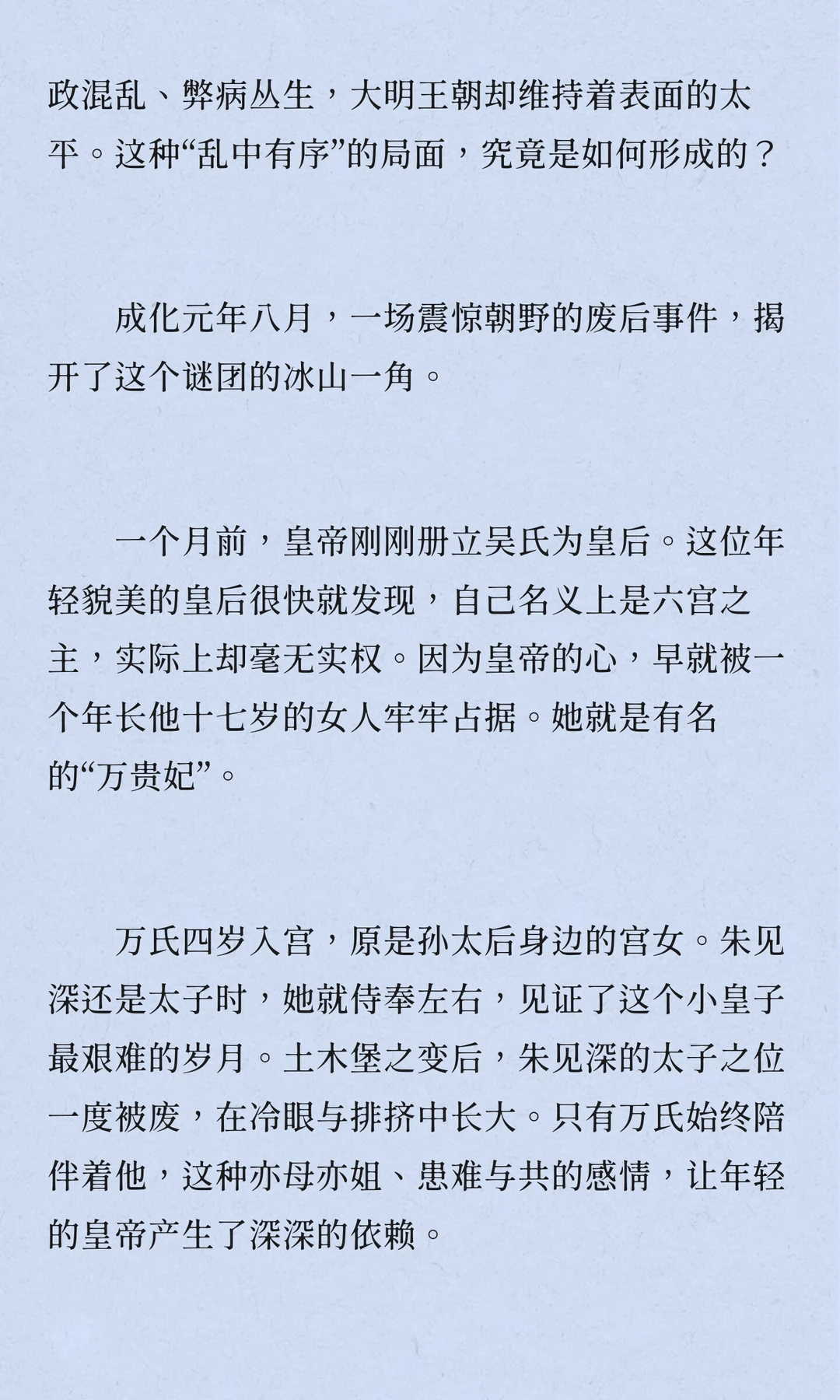 成化年间,朱见深即位后,宫廷权力高度集中于万贵妃和汪直,特务统治和宦官专权加剧。土地兼并和流民问题逐渐积累,社会矛盾虽未爆发,但埋下隐患。成化朝表面太平,实则内里溃烂,为明朝最终覆灭埋下伏笔。