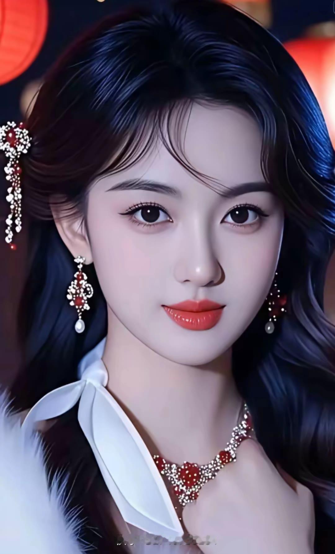 优雅红唇,闪耀耳环,复古风华,韵味十足。