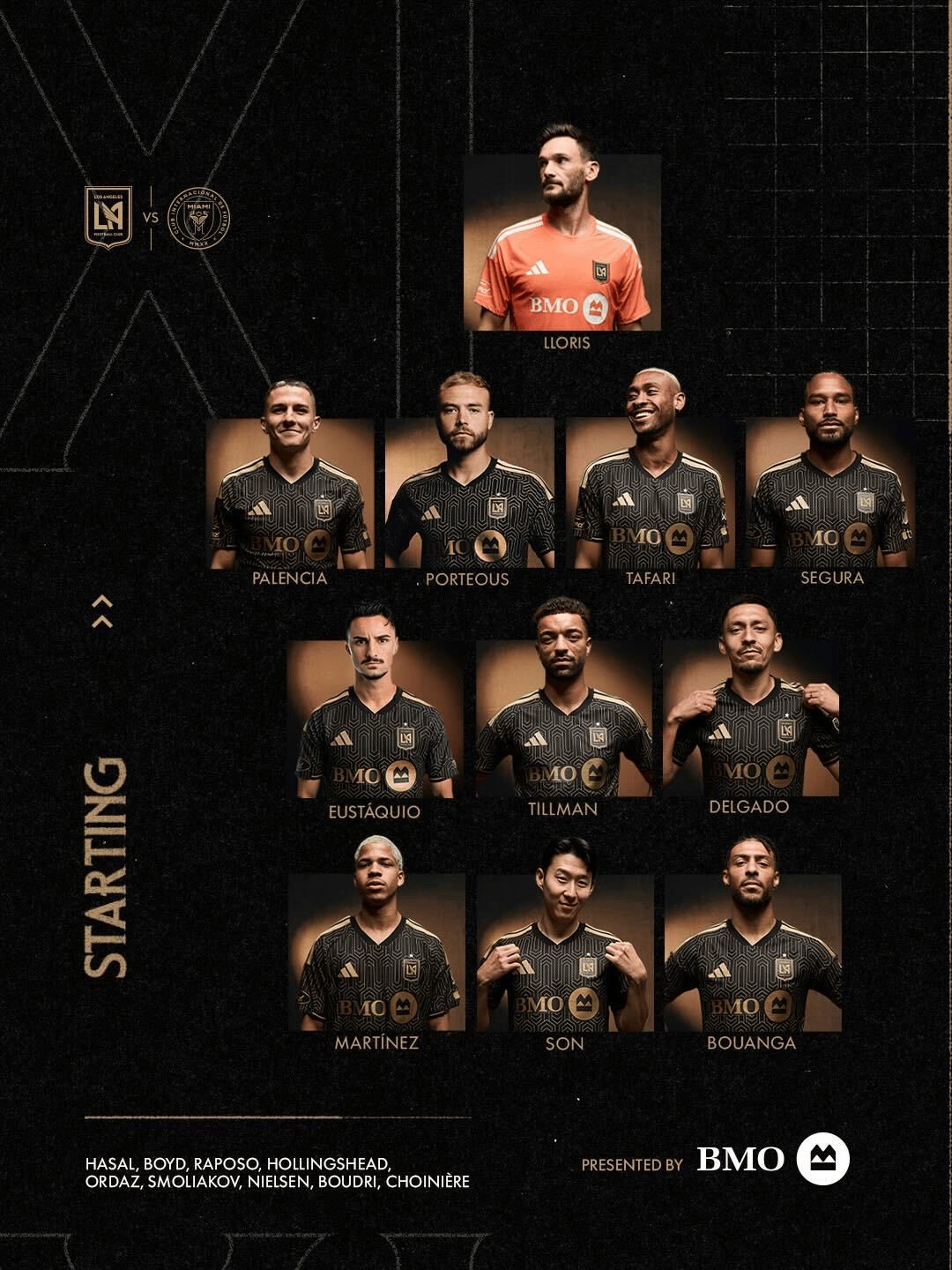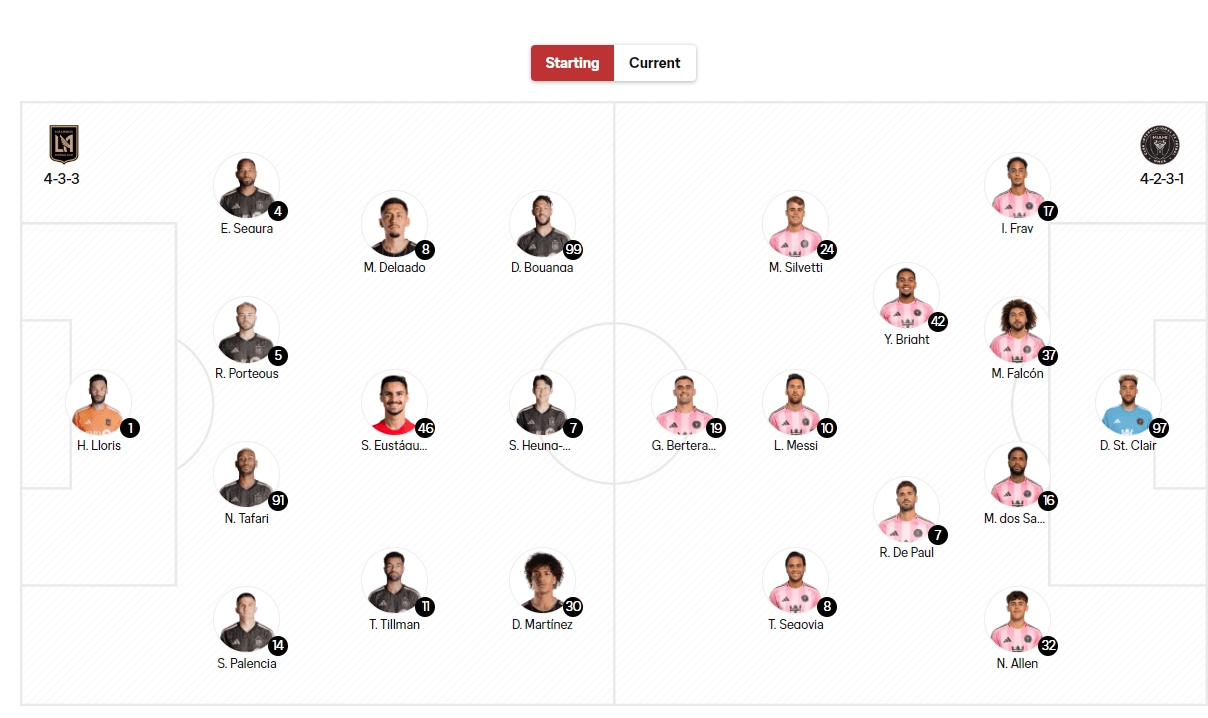 虎扑02月22日讯2026赛季美职联首轮上演焦点战,洛杉矶FC主场对阵迈阿密国际。赛前,双方公布了首发阵容。