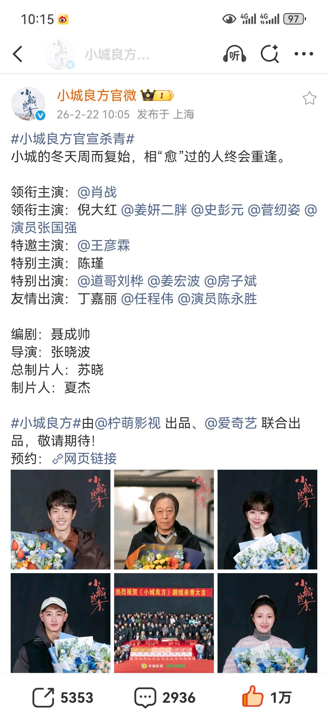 小城良方杀青啦[啤酒][啤酒][啤酒],好想快点看到这部剧,看了杀青特辑感觉好有