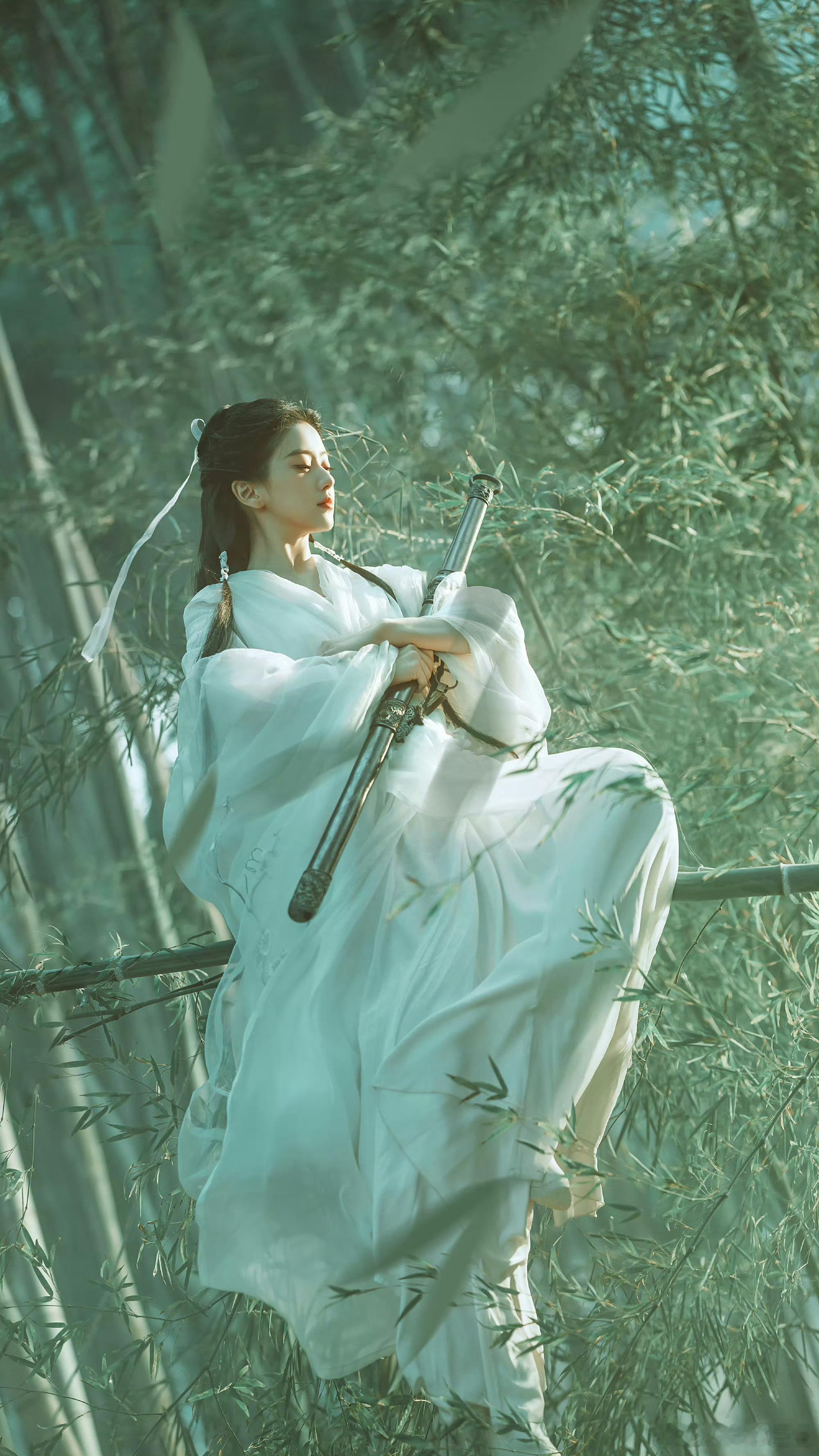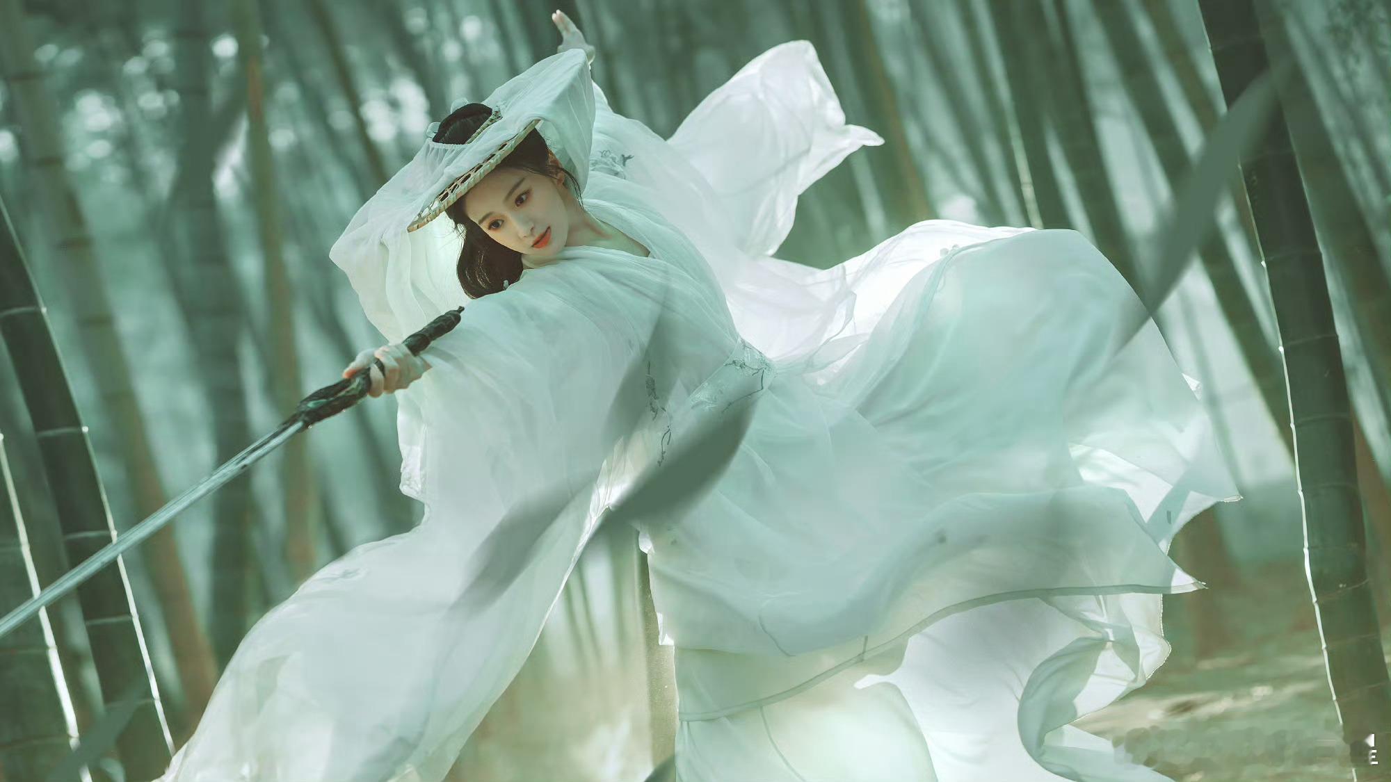 好漂亮包上恩侠女舞剑写真包上恩白衣舞剑写真