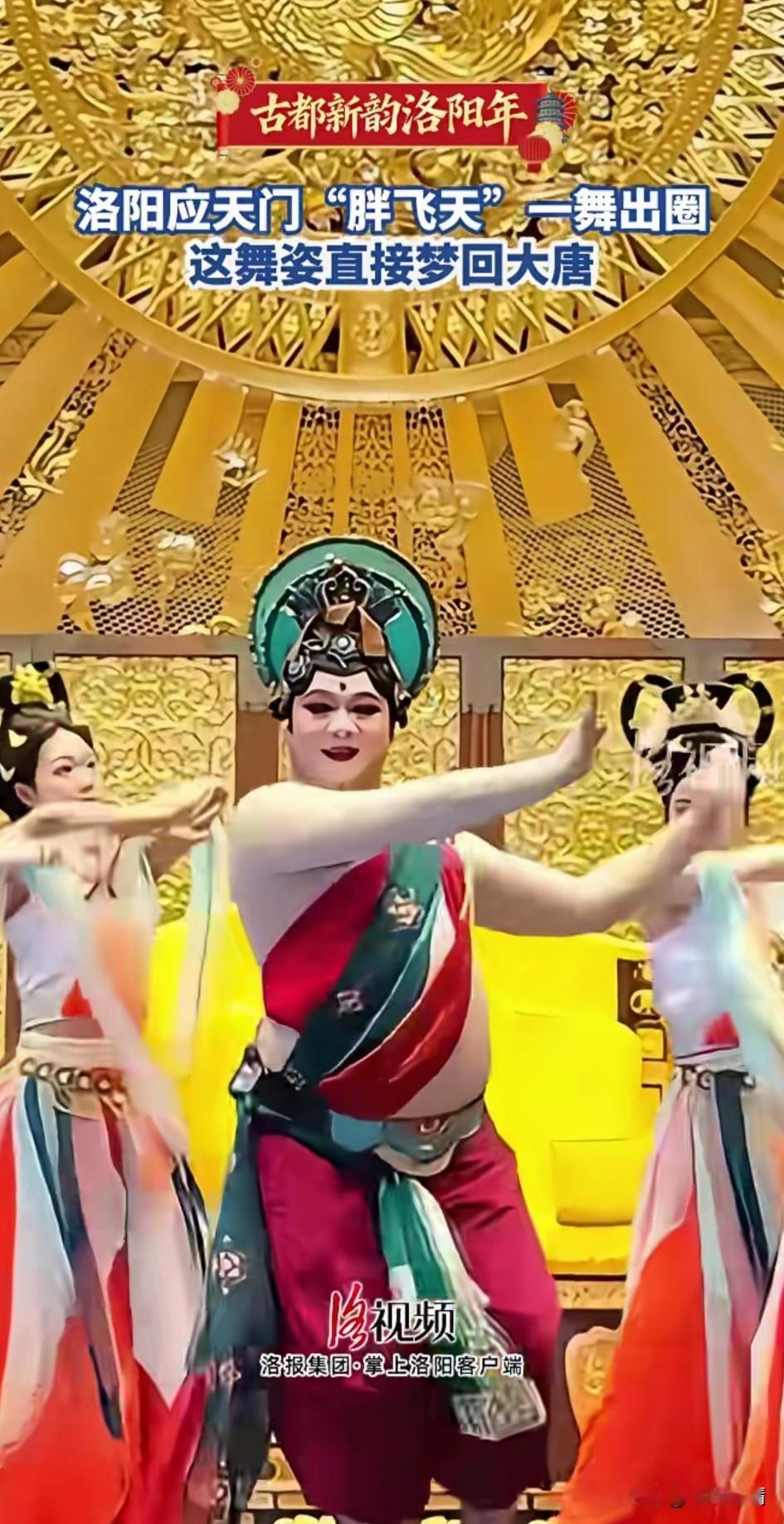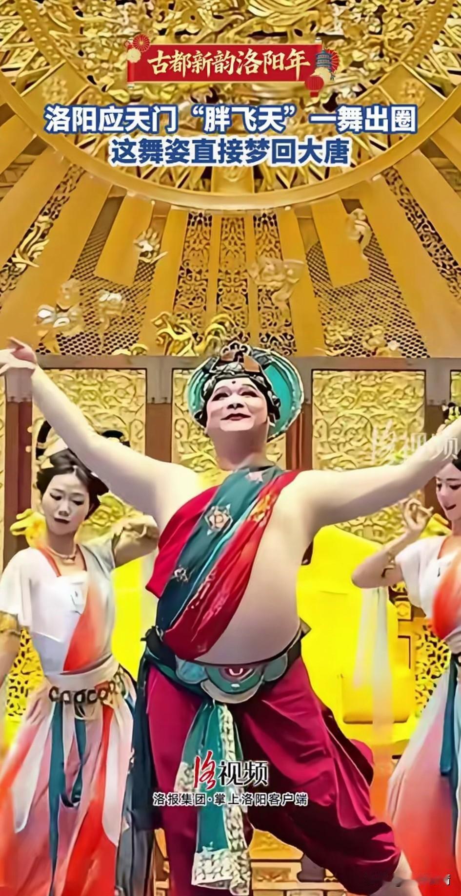 近日,洛阳应天门的胖飞天出名了, 看着他膀大腰圆的样子, 再加上传统的服饰, 舞起来非常的带感, 啤酒肚是最后的倔将, 旁边的女孩给他伴舞, 但是大家的眼神都在这个男的身上, 因为他跳的实在是太灵活, 灵活的胖子毕竟不常见, 而且还跳的是飞天舞, 这优雅的舞姿, 不仅把现场的观众逗笑了, 还把网友也给逗笑了, 怪不得他能够火, 这反差感直接拉满, 到底是谁让他在这里跳舞的? 要是君王每天看到他跳舞, 估计就很早就不沉迷于美色了, 绝对是个认认真真君王, 大家觉得胖飞天跳的怎么样? 洛阳应天门夜宴 应天门跳舞 跳舞的胖贵妃 洛阳粒应天门