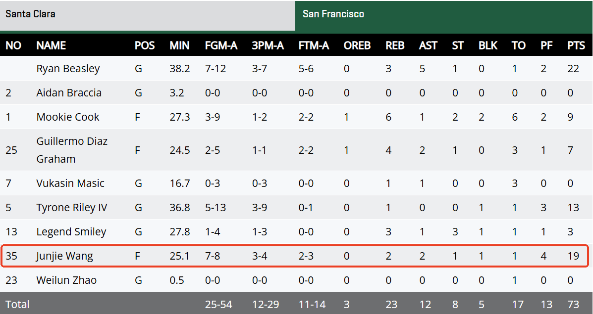 Dcamera 2 2026-02-22 15:43 明眼人一看就知道旧金山这个队能力最强的是莱利四世和王俊杰。教练能把王俊杰用成5号位替补,让莱利单怼四号位硬又壮,球权给后卫比斯利无限单打,就知道球队完蛋了。换个能组织的后卫,就目前这个锋线群和弱分区的实际情况,打机动一点战绩真就追刚萨加去了...要不是比斯利真心菜得抠脚又乱打,和圣克拉拉其实能打得很均衡的。俊杰,维伦,莱利下赛季快跑吧