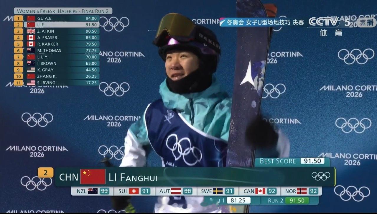 李方慧第二滑91.50分,直接来到第二!太稳定了!