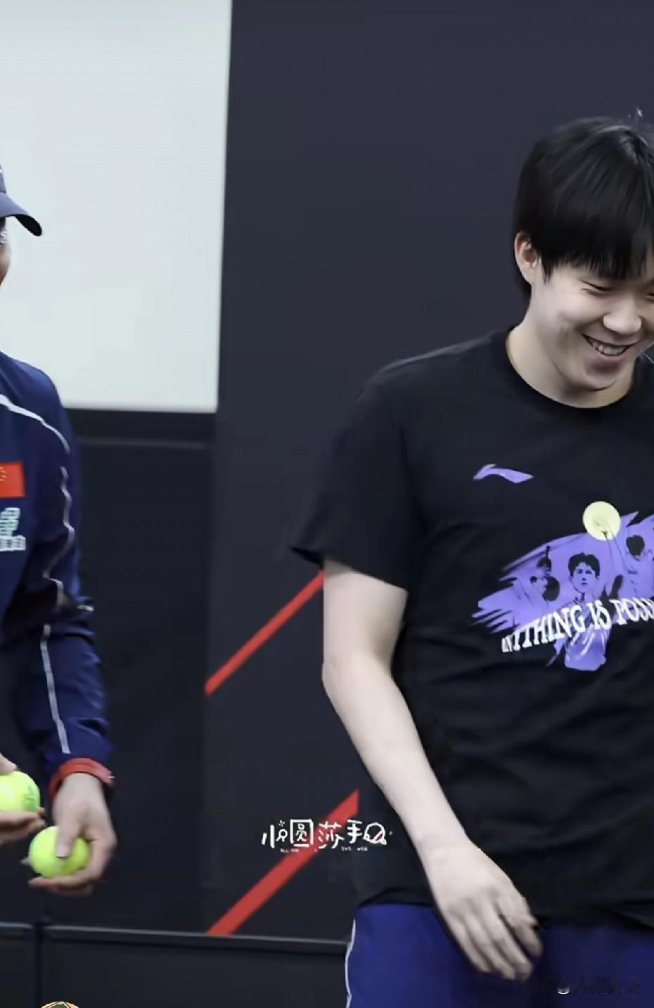 王楚钦赛前训练很开心啊。 一会儿就是王楚钦和卢伟的比赛了,看到王楚钦已经开始赛前热身,今天晚上玩个新花样,背后接球的时候没接住,从背后滑下去了,然后看到体能教练和楚钦俩人都笑了,这是练开心了。虽然楚钦的比赛在晚上,但是他上午和下午都训练了。 第一场比赛,还是牛冠凯陪着楚钦训练,牛冠凯在模仿反手发球,第一个没有发好,把楚钦给逗笑了,看到楚钦也是练的满头大汗,这次他也把头发剪短了,刘海儿打薄了,看起来很清春。 在今天的比赛中,林诗栋、周启豪已经顺利晋级男单32强,温瑞博是止步第一轮了,估计参加大赛还是有些紧张,张禹珍采访时说觉得温瑞博自己有负担,而他打的更有自信。王楚钦和卢伟这是第一次交手,也只能看录像来了解对手的打法,又是第一场比赛,肯定也不太好打,不过相信楚钦可以的,加油!