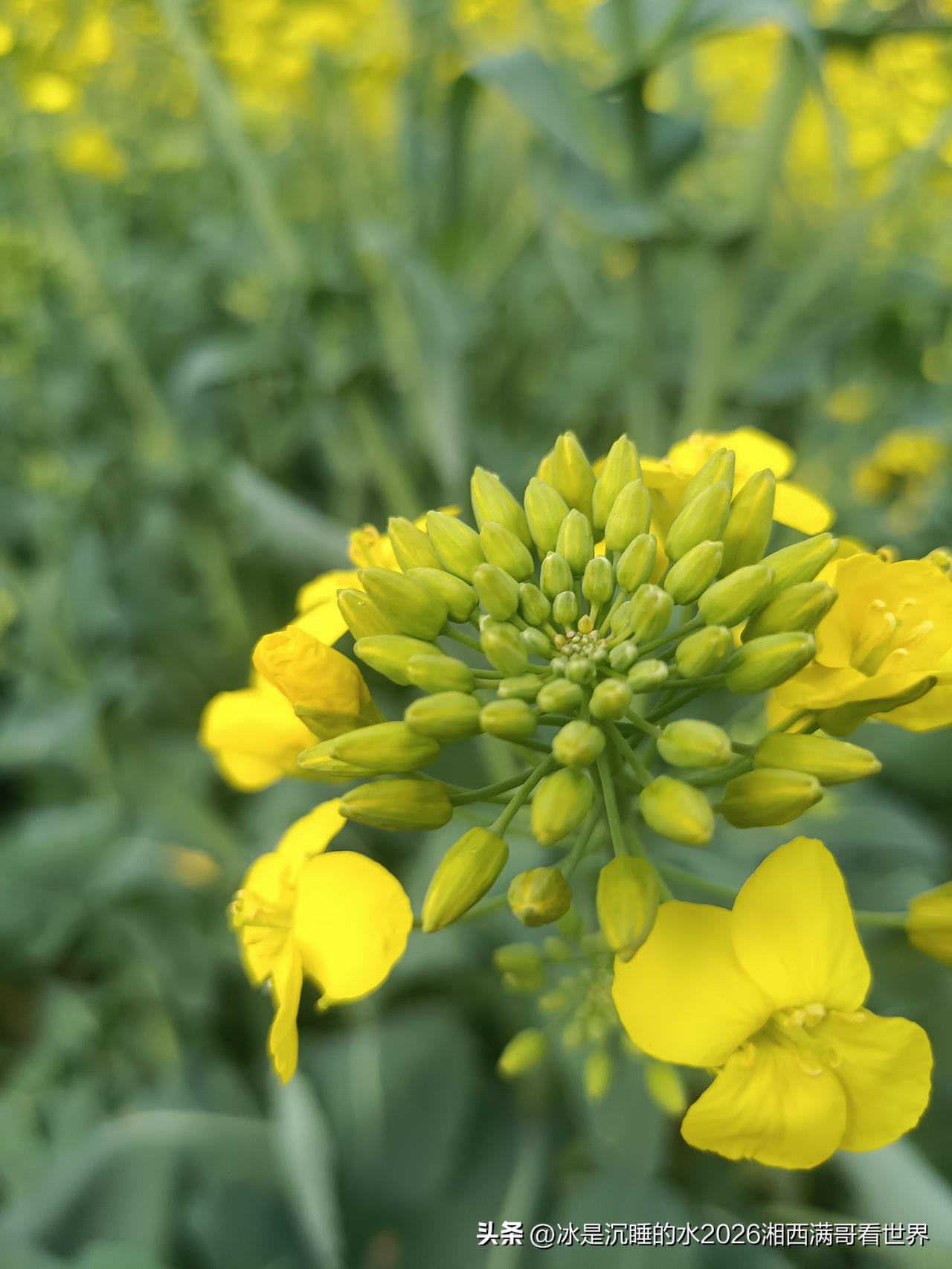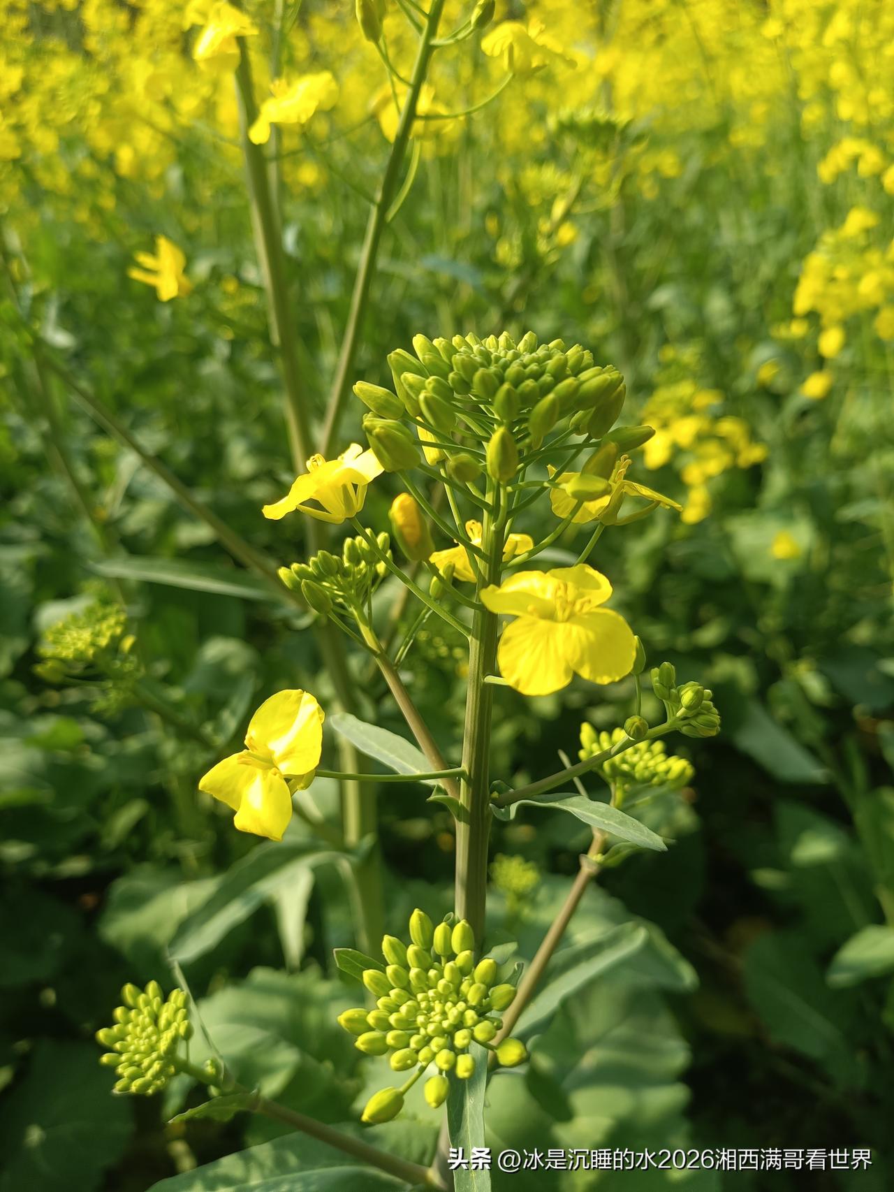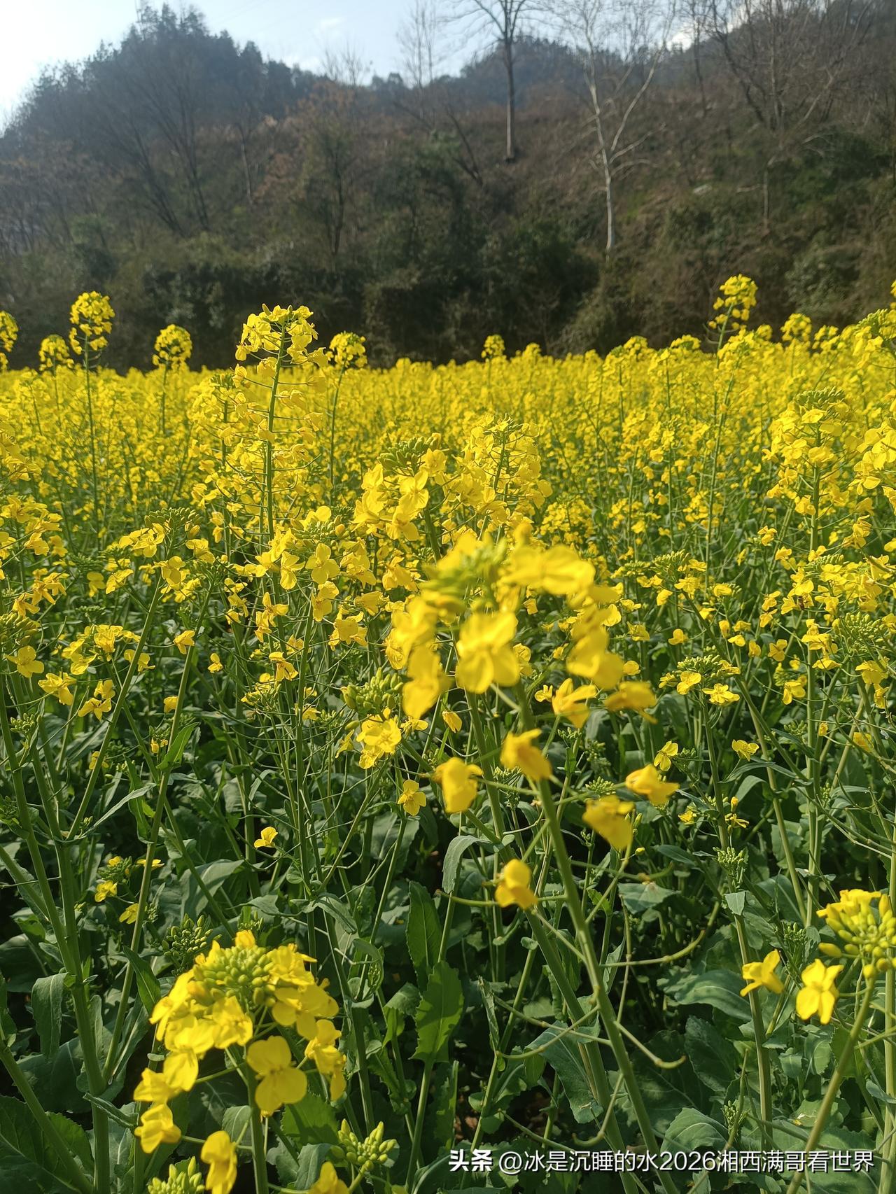 初春的颜色是什么?必须是田野的一大片金黄色的油菜田!黄色的花骨朵在春风里轻轻摇曳,蜜蜂在花朵丛中来回飞舞,空气弥漫着油菜花夹带着泥土的芬芳,远处的山峦雾气缭绕,小河清澈见底,潺潺流过,各类野生的鸟儿在树枝头欢快跳跃着,叽叽喳喳不绝于耳。 春天在哪里?春天就在田野、山坡、小河里,就在每个人心里。 油菜花