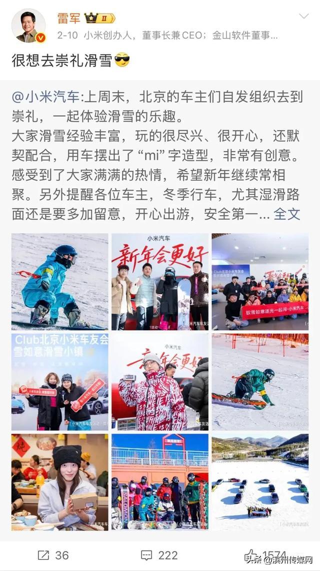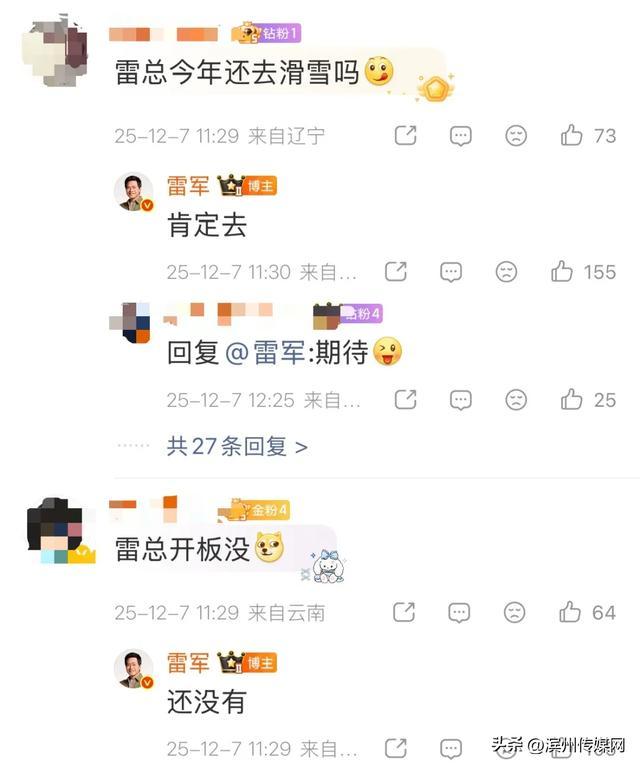 有网友注意到,今年2月10日,雷军就曾发文称很想去崇礼滑雪。2025年12月,还曾在评论区回复网友,称今年还没开板,但肯定去滑雪。
