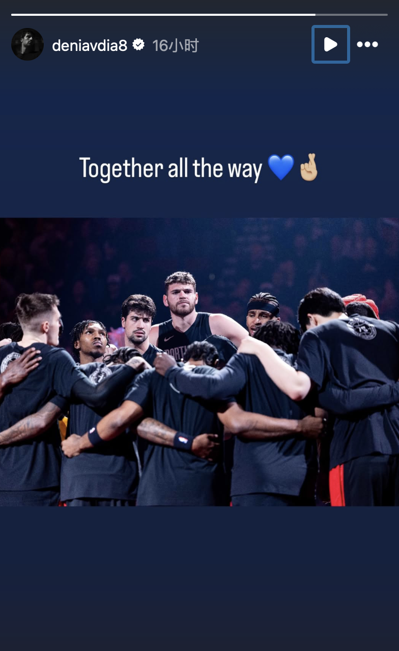 虎扑02月22日讯开拓者球员德尼-阿夫迪亚更新Ins,晒出一张球队的照片与球迷分享。