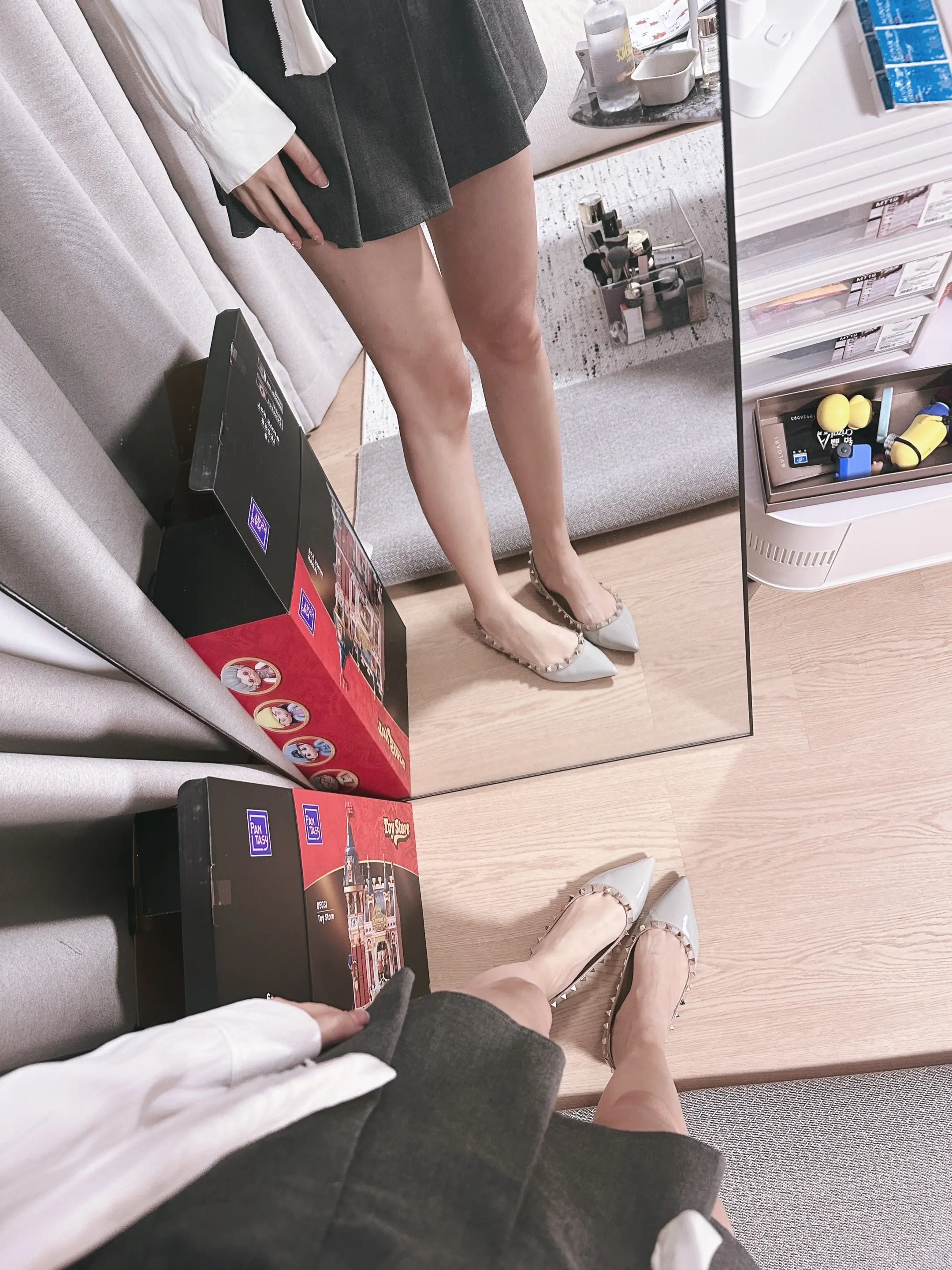 白衬衫+平底鞋