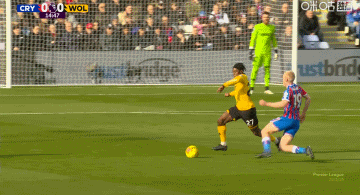 第90分钟,米切尔横扫禁区中央,盖桑抢点破门,水晶宫1-0狼队。↓