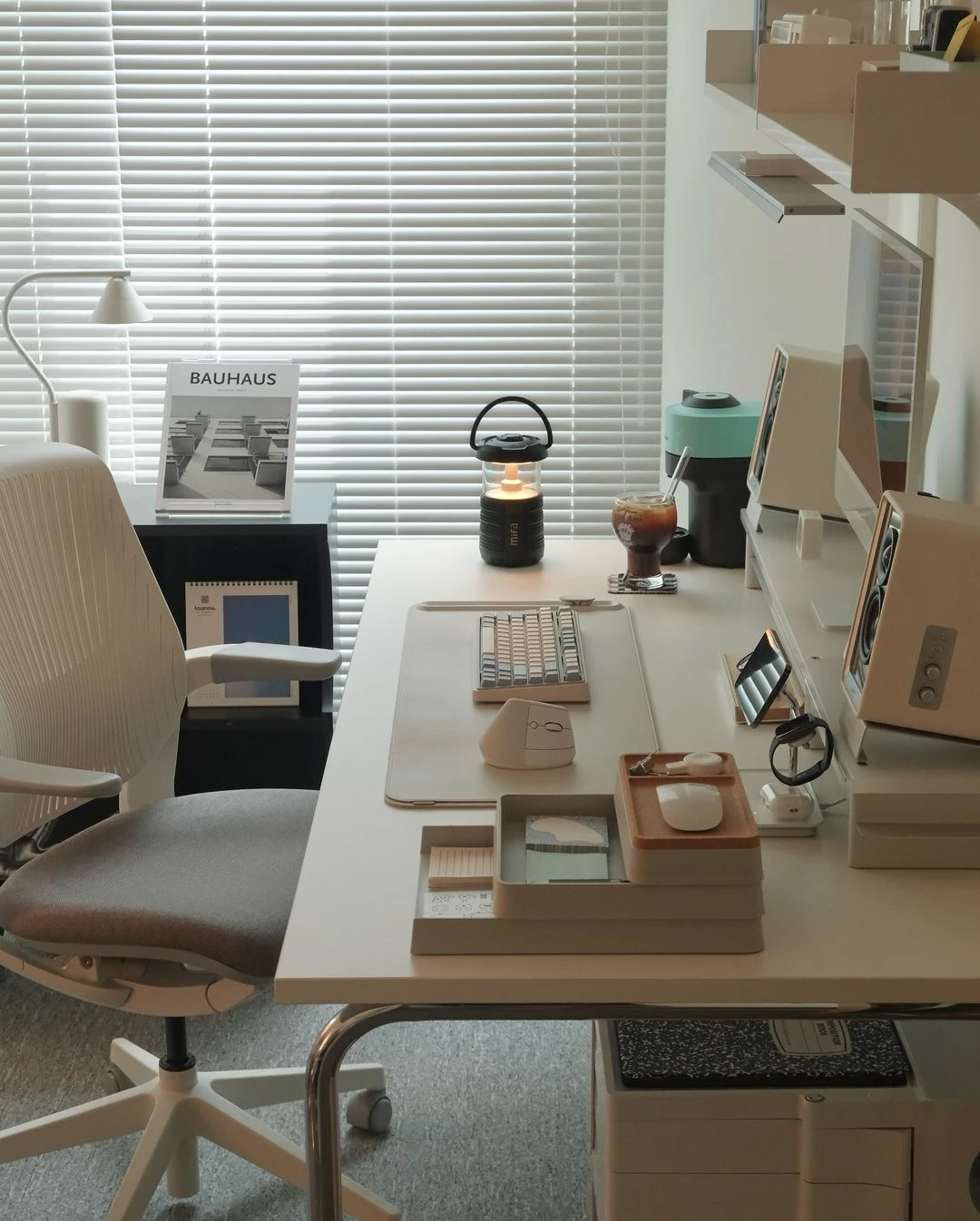 忙碌了一天,回到温馨的小窝,一个治愈系的桌搭能瞬间缓解疲惫。一张木质小桌,一台笔记本电脑,旁边是一盏暖光台灯,几本爱读的书,还有一盆生机勃勃的绿植。偶尔泡一杯热茶,或是打开音箱,让轻柔的音乐流淌。在这里,无论是工作、阅读还是小憩,都能找到属于自己的宁静时光。