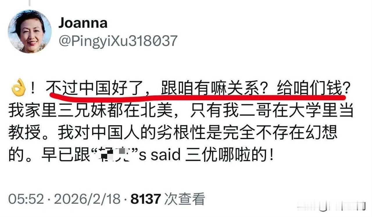 这应该就是为什么美国华人不团结的最好回答了,这样一群如此仇视自己母国的人,你怎么让它们团结,它们不互相陷害就已经很好了,它们在美国的地位基本就是最低的,什么群体都可以欺负它们,其实就是它们活该,它们这样仇视自己的母国,那个种群都会看不起它们,都可以踩它们两脚,所以经常有人说有钱人都往美国移民,说什么你可以不相信有钱人的人品,但不要不相信它们的眼光,就这样一个在美国做五六等公民的群体,有钱人过去第一代第二代还可以,基本到第三代就被斩杀了,都说去了那么多有钱人和人才,基本就没有听到哪个华裔有钱人或者人才在美国混得好的,一年去几十万华裔有钱人和人才,都去哪了?