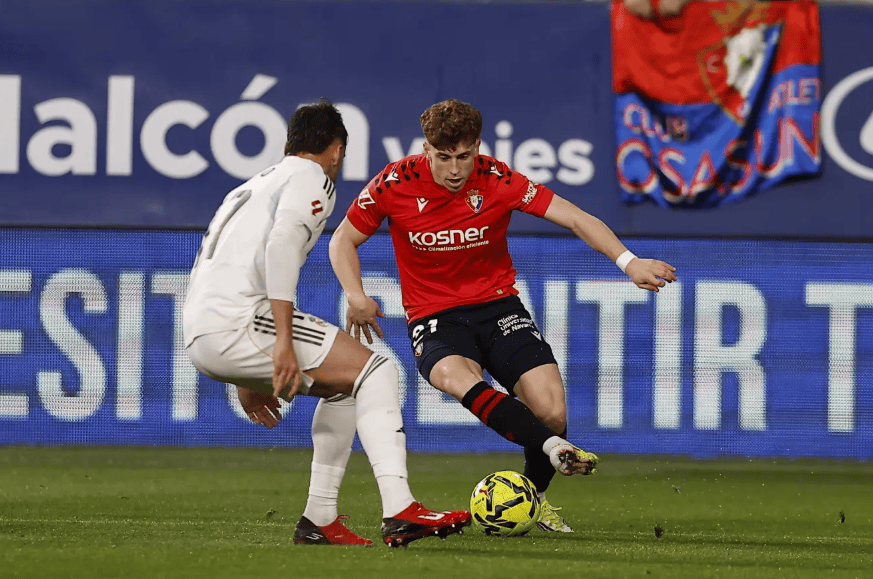穆尼奥斯在奥萨苏纳2-1击败皇马的比赛中表现出色,成为皇马右后卫卡瓦哈尔的"噩梦"。