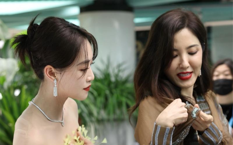 同为中戏校友,曾黎、蓝盈莹经典同框名场面,相处融洽,活力干练 上海电影节闭幕式红毯两人并肩合影时,蓝盈莹礼服装饰不慎勾住曾黎的高定裙摆,蓝盈莹当场慌张道歉,工作人员及时上前解围,这一幕被拍下发到网上引发热议,现场也有正常友好的同框合影照。 2025年末国剧盛典曾黎和蓝盈盈台下同坐,蓝盈莹的耳语逗得曾黎仰头大笑,氛围轻松亲昵。两人共同出演歌舞电影《一闪一闪亮晶晶》,在影片发布会、杀青宴等场合多次同框互动,还一起参加过《乘风破浪的姐姐 第二季》《国家宝藏·巡礼季》等综艺录制 。 曾黎气质优雅大气,蓝盈莹活力干练,同框时风格对比鲜明又很和谐。她们同为中戏校友,私下相处融洽,近期两人因分别在《沉默的荣耀》和《生万物》中出彩演绎,得到广大观众的喜爱。