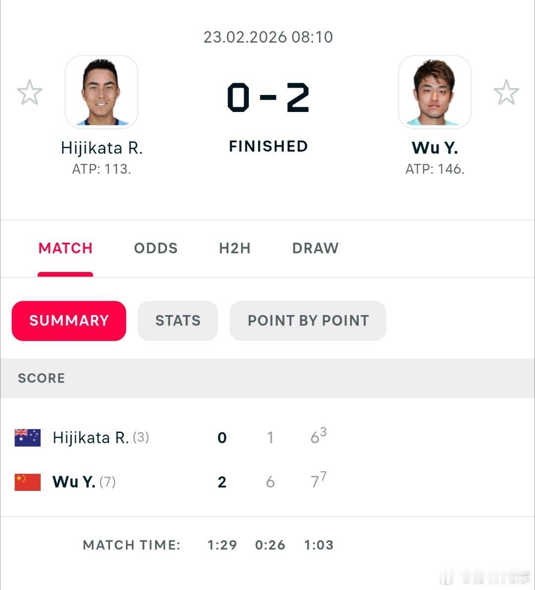 ATP500🇲🇽阿卡普尔科资格赛决胜轮🇨🇳吴易昺6-1/7-6(3)土方凛辉🇦🇺顺利晋级正赛。收获13分,即时排名142,吴易昺此战一举重回中国一哥宝座。值得一提的是第二盘,阿昺0-5开局,奋起直追战至抢七。小分0-3落后,连拿7分两盘带走胜利。留下土方哥风中凌乱。可喜可贺,希望有个好签。本站兹维列夫领衔。网坛风云中国网球吴易昺