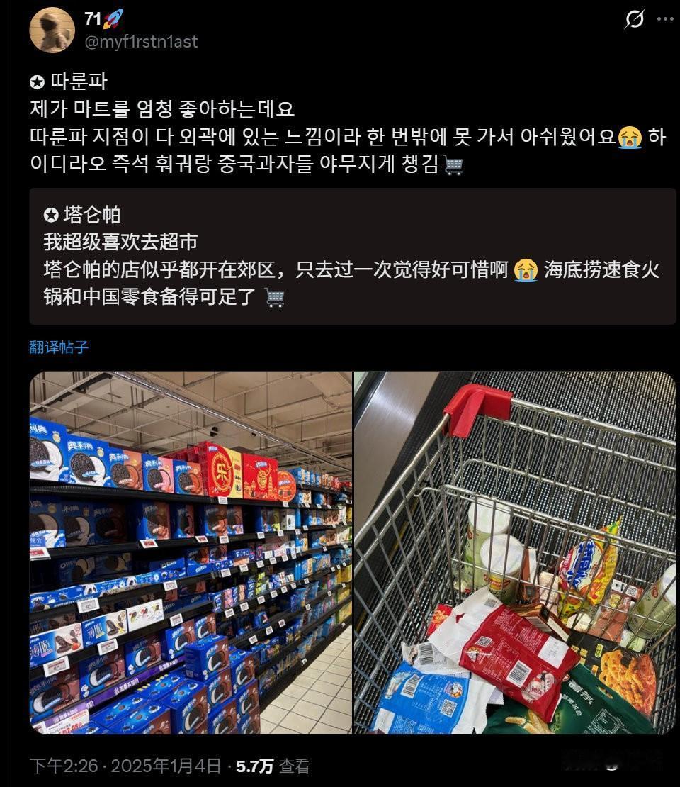 韩国游客真的是照着购物清单去超市买“纪念品”的……따룬파=大润发。肯消费,挺好。