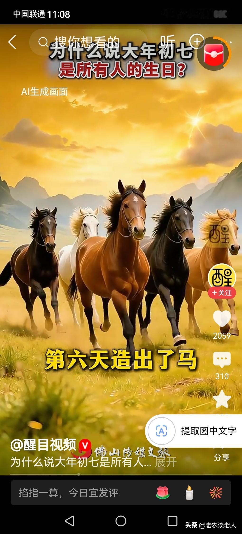 为何说大年初七是所有人的生日! 世界上每一个人都有自己出生的日子,这个日子就是自己的生日。 每一个人的生日都是独特的用来纪念自己出生的日子,对自己有着特殊的意义。 那么,为什么说大年初七是所有人的共同的生日呢? 其实这是远古时代流传下来的亘古不变的一种历史性的传说,来源于女娲造世。 古老的传说,女娲造世,世间的万物都是由女娲制造出来的:大年初一女娲造出了鸡,大年初二女娲造出了狗,大年初三女娲造出了猪,大年初四女娲造者了羊,大年初五,女娲造出了牛,大年初六,女娲造出了马,大年初七,女娲造出了人。 世界上所有的人,都是女娲在大年初七那一天制造出来的,为了纪念这一天女娲造人,因此,大年初七是所有人共同的生日。