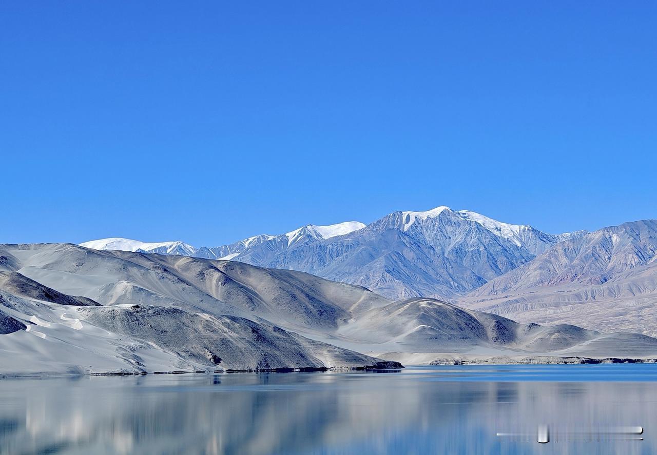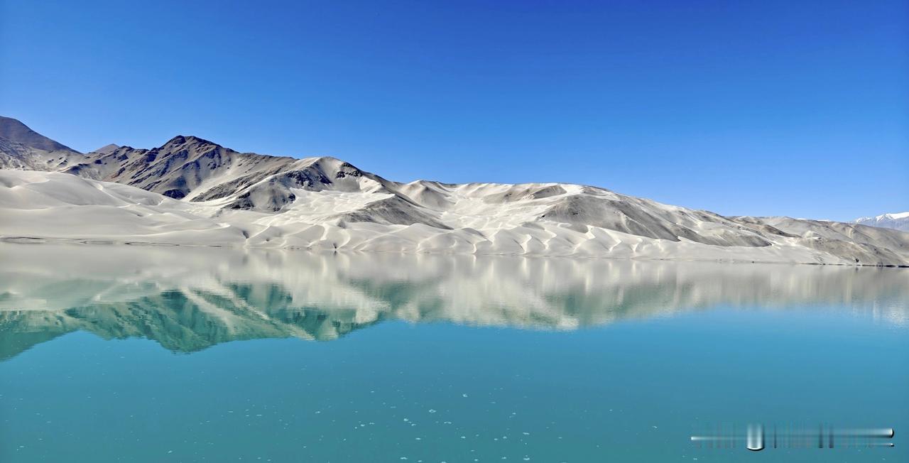 帕米尔高原的白沙湖,是蓝与白交织的高原幻境 。 湖畔的白沙山银白细腻,如凝固的浪涛环抱着湖水;湖水随天光变幻,从蒂芙尼浅蓝到深邃宝蓝,无风时如镜面,清晰倒映出白沙、蓝天与远处公格尔九别峰的皑皑雪顶,虚实难辨。 清晨薄雾轻笼,沙与湖都蒙着柔纱;正午阳光洒下,沙粒泛着细碎银光,湖水澄澈透亮;黄昏时分,夕阳为沙山镀上金边,湖面波光粼粼,静谧又壮阔。高原清风掠过,偶有飞鸟划过天际,更添几分灵动。