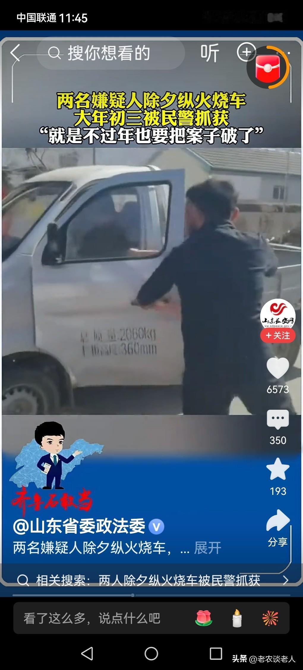 2人除夕纵火烧车大年初三被抓! 普通人在日常生活中,总避免不了,人与人之间发生一些小的纠纷,小的分歧,小的矛盾,一定要记住,要善待他人,要谅解他人,要化干戈为玉帛,要不计前仇旧恨,把自己的眼下的日子过好,是每一个人最重要的事情。 据媒体2月23日报道,在山东某地,黄某和李某与董某曾发生过一些矛盾,借2026年2月16日除夕之夜之机,将董某的货车烧毁,随即逃离现场。 当地公安机关接到报警以后,放弃了过年的机会,布下天罗地网,追捕在逃的纵火嫌疑人黄某和李某,于大年正月初三下午在青州将嫌疑人抓获归案。 根据刑法114条规定,纵火违害公共安全,未造成重大的财产损失和伤亡事故的嫌疑人,应当追究刑事责任,可判处3年以上10年以下的有期徒刑。 通过此事例回到我们的现实生活中来,奉劝一些心胸狭小的人一定要记住,要善待他人,不能计较旧恨前仇,应该化干戈为玉帛,要懂得,要知道,吃亏是福,千万不要采取过急的手段去报复他人,现在我们的社会是法治社会,不是打打杀杀的社会,自己做出过激的行为,必然要为自己的行为承担巨大的经济和法律责任的。 春节过年,本是欢天喜地的时候,千万不要乐极生悲,做出自己不应该做的事情,避免惹火烧身。