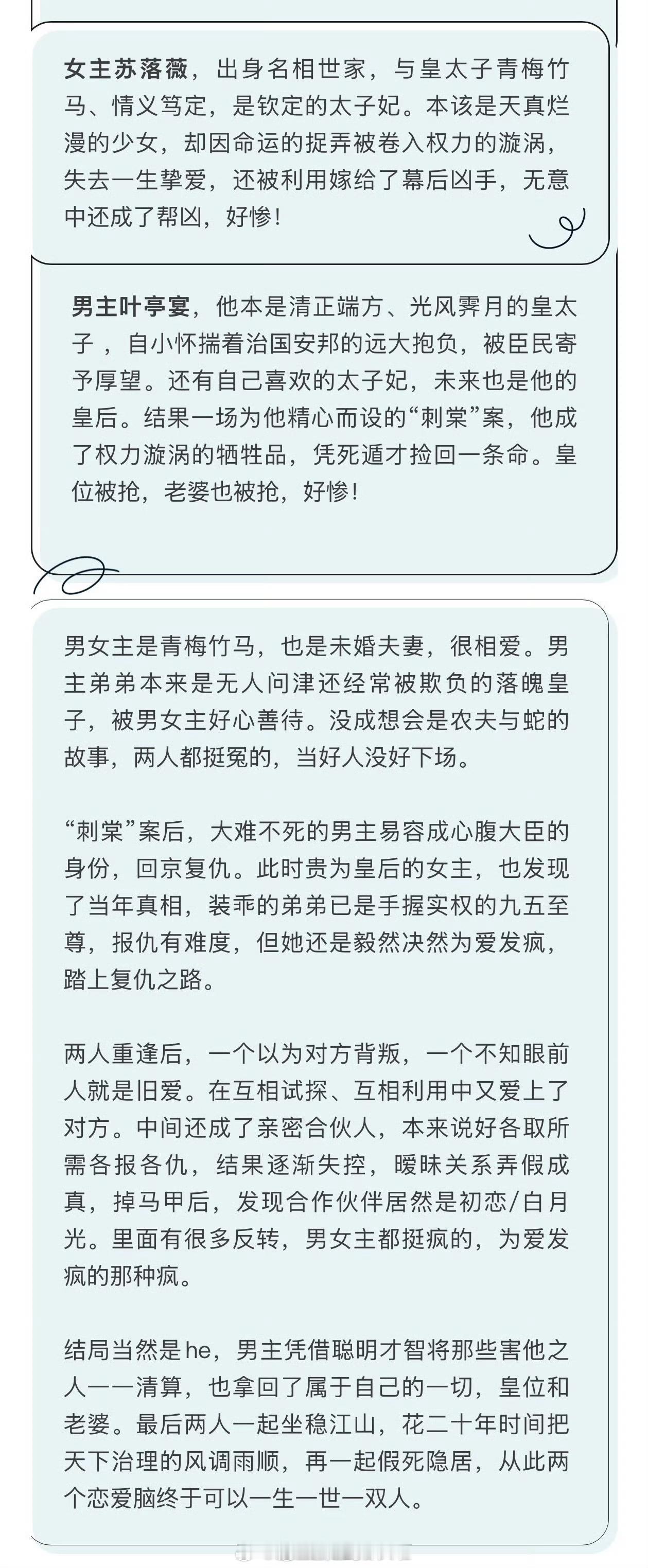 🍉《刺棠》张凌赫张婧仪,这个组合颜值真的爱了爱了,期待合作小说算最新出的小说里比较火的,不是纯谈情说爱,权谋内容还不错被刺杀假死的太子换脸成臣子回来复仇,才发现本以为背叛自己的未婚妻其实也在筹谋为自己报仇