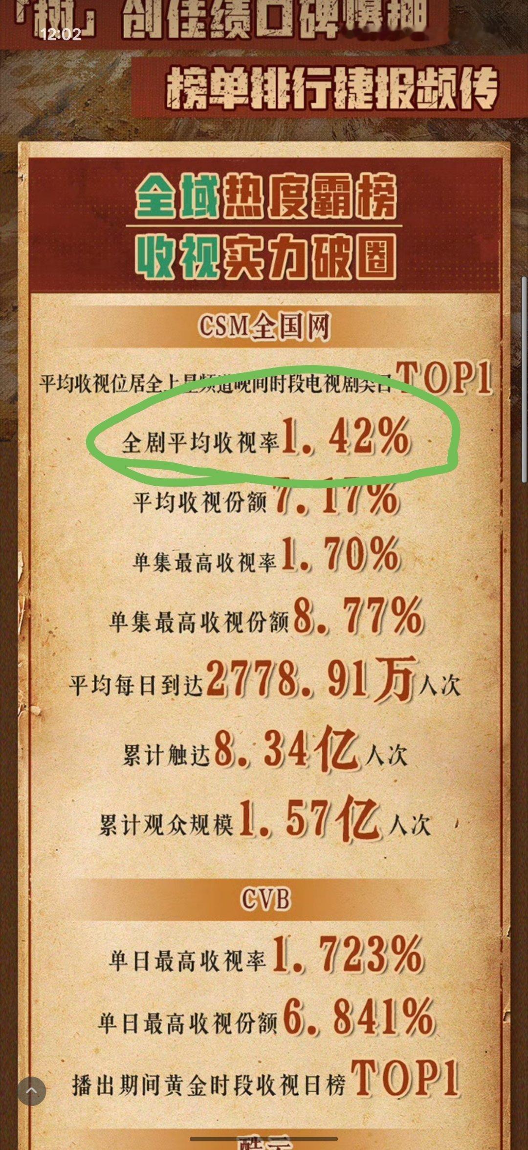 怎么还有官博诈收视率的啊?央八发的首播三天1.42,被《生命树》官方诈成全剧平均,csm公众号发的文章,1.30-2.11,前12天,csm全国网才1.3,哪来的全剧平均1.42啊?
