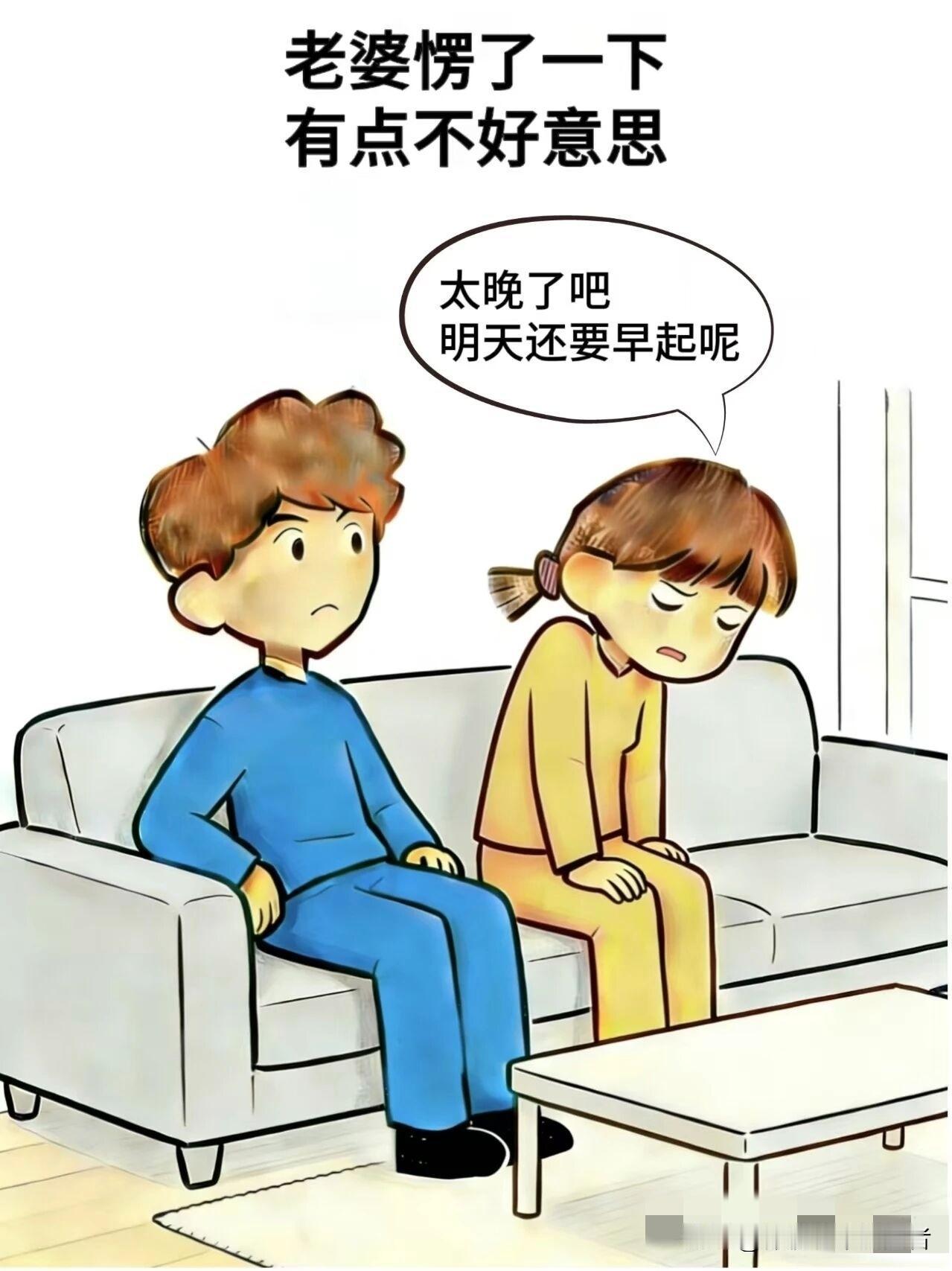 趣味漫画:老公:几点了,老婆:十点了,老公:整吗,老婆:这么晚了,不太好吧,老公