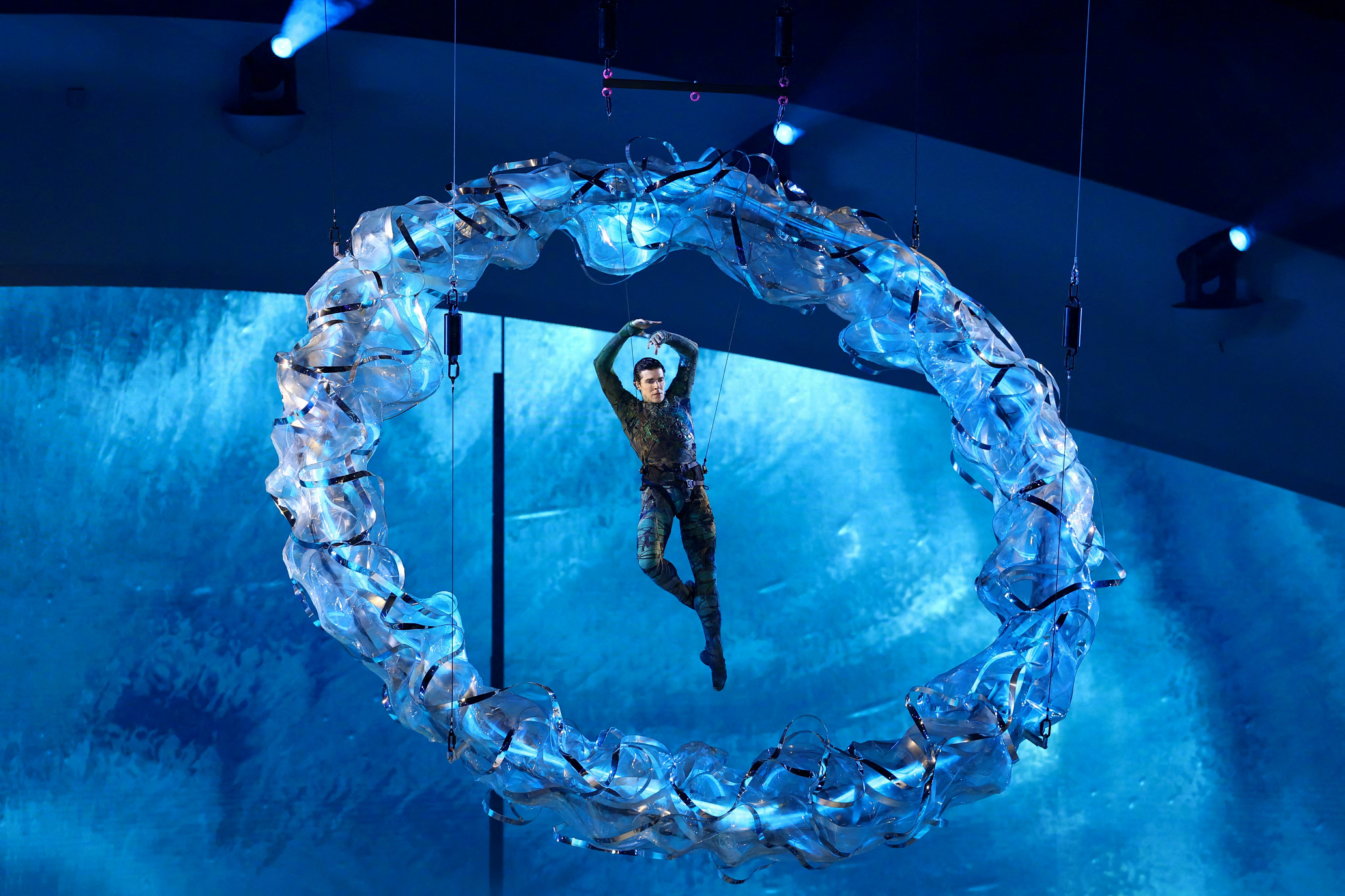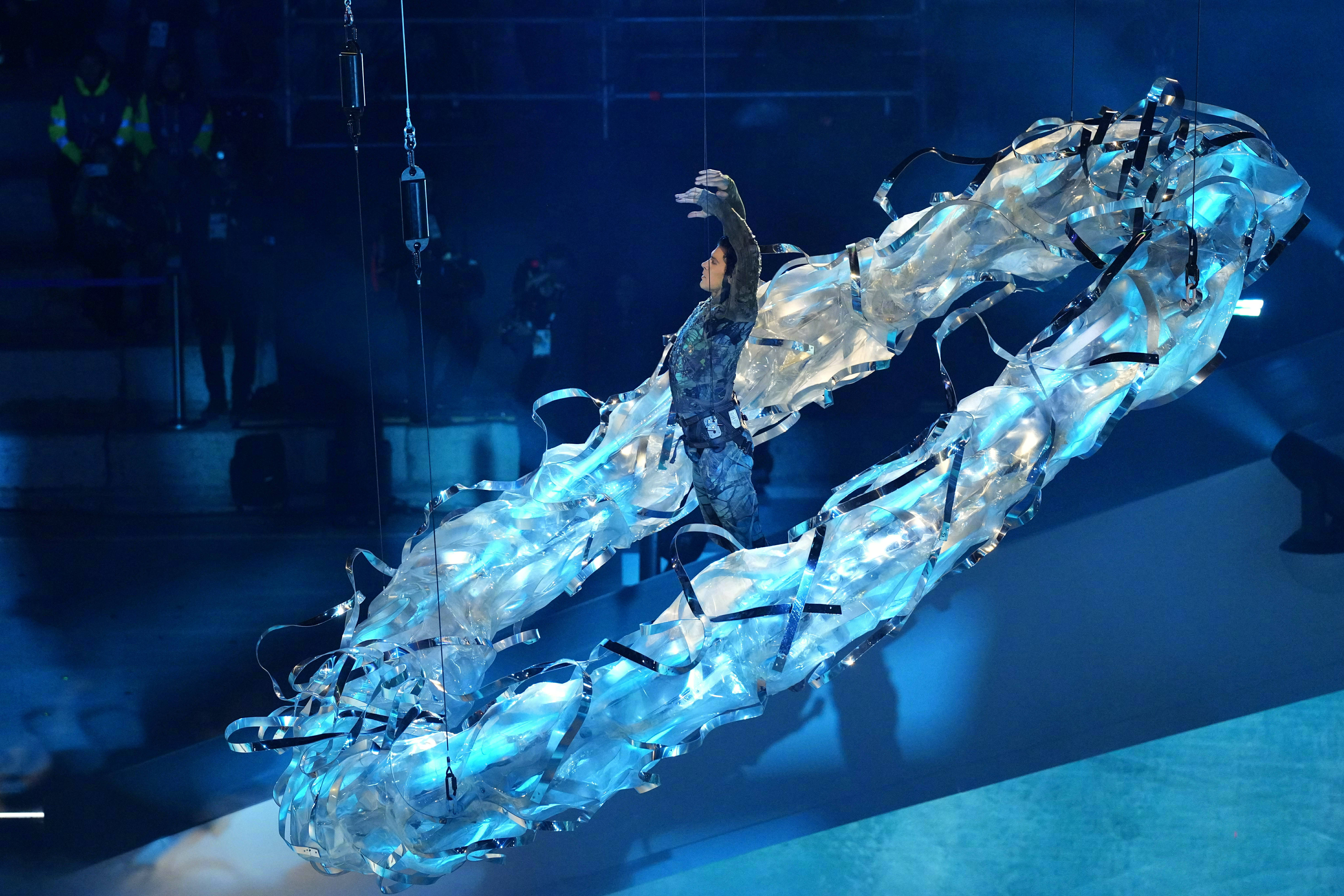 ⛷️❄️贯穿整场仪式的艺术主线是意大利经典歌剧。威尔第笔下《弄臣》的主人公里戈莱托(Rigoletto)率先登场,象征意大利歌剧精神与即兴喜剧传统的结合;随后《费加罗》、《阿依达》、《蝴蝶夫人》等歌剧主人公相继亮相,让整座竞技场仿若沉浸于歌剧史的长河之中。其中,多位重量级艺术家参与了表演:世界知名芭蕾舞者罗贝托·波利(Roberto Bolle)以精湛舞姿诠释力与美的结合;流行歌手阿基里·劳洛(Achille Lauro)点燃现场气氛,而国际电音团体Major Lazer亦压轴登场,为闭幕式带来现代节奏与活力。