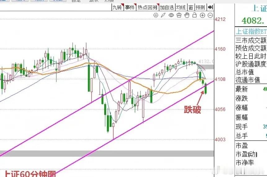 第一, A股节前最后一个交易日出现了向下的跳空缺口,并且分时图几乎全天震荡走低,一根阴线杀穿了底下好几根重要的均线支撑大家看图一。并且确认了短线高点下移的态势。从这个角度来看,接下来市场震荡偏弱的概率相对偏大。