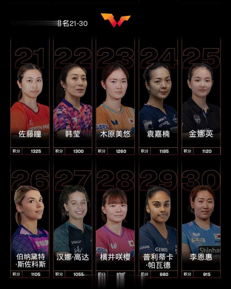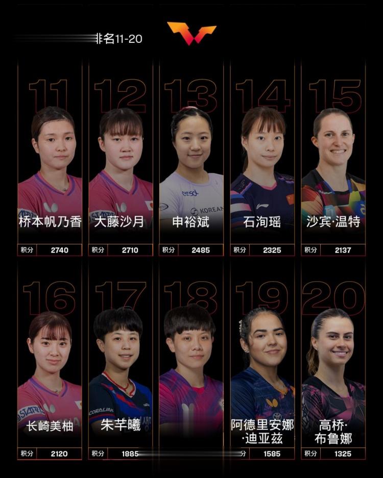 直播吧2月23日讯今日,国际乒联公布了2026年第9周女单世界排名,前十球员里有6名国乒选手,其中孙颖莎、王曼昱、陈幸同位列前三,蒯曼第5位,王艺迪第7,陈熠第8。