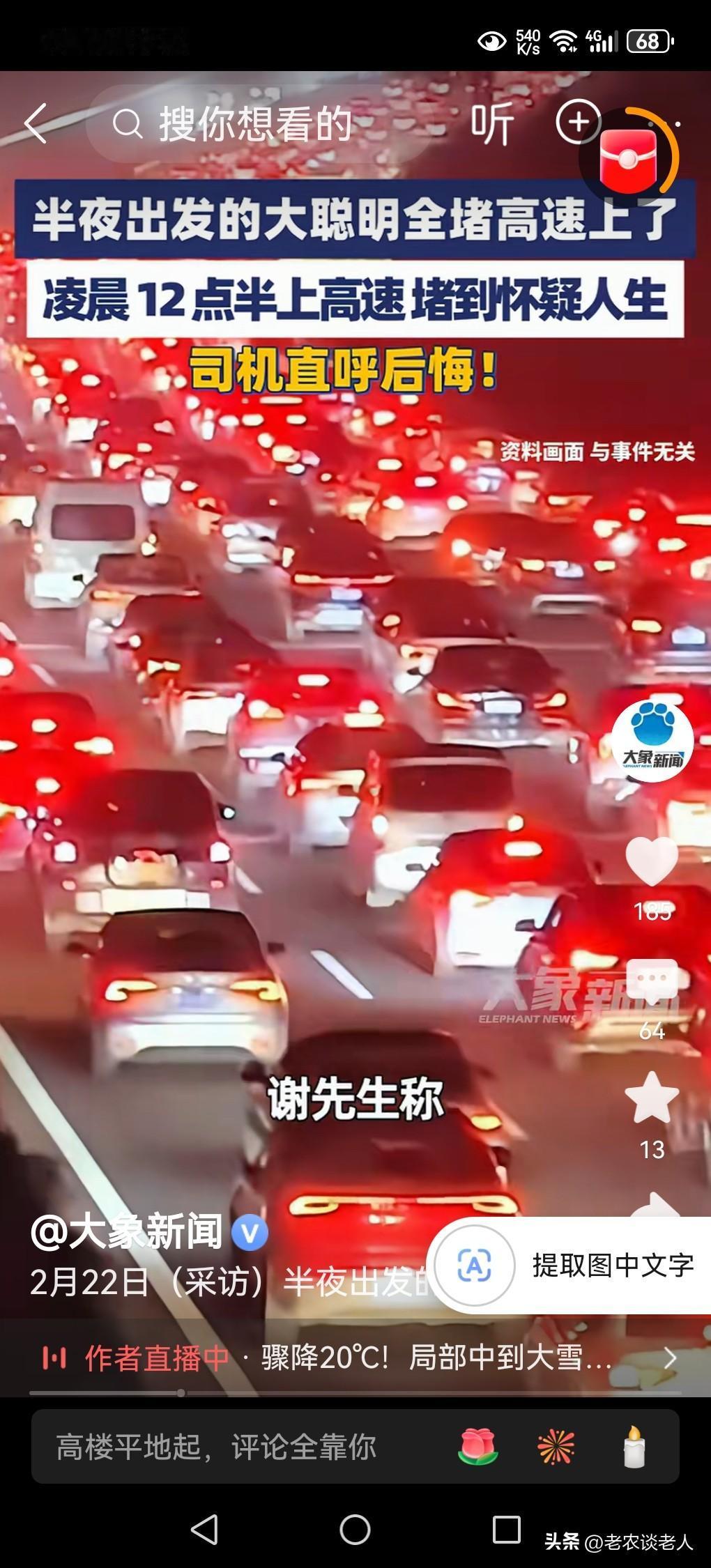 “大聪明”们半夜出发全堵高速上了!“错峰出行”才是“大聪明”的王道! 春运返程期间,很多人耍“大聪明”,一宿没睡觉,傍晚早早的驾着私家车上路,结果全部堵在高速公路上。本来10个小时就能到达的路程,结果在路上堵了10个小时,20个小时才到达目的地。 春运返程期间有什么办法,可以躲避高速公路堵车呢? 智慧的人有这两种方法,分享给大家,希望对驾车返城的人们有所帮助: ①“错峰出行”。村子里的小张是一个聪明人,他知道晚上出行是最堵车的,因为大家都是“聪明人”,选择晚上出行,不会堵车,结果都堵在高速公路上。 他反其道而行之,在白天早晨8:00出行,从老家到上海,本来只有10个小时,结果刚刚好一路畅通,但比平常多了一个小时才到达了目的地,原因是路上车多,速度慢了一点点而已,比堵在车高速公路上几个小时不能动弹,要高明的多,要好得多,要舒服得赌。 这就是“错峰出行”,给小张带来的好处。 ②绕开最容易堵车路段。我家的孩子返程之前,做了大量的准备工作,在网上搜搜和寻找过去最易堵车路段,都一一记录在案,先做好预备绕路的计划,从那些最容易堵车的地方开始,绕开这些路段,哪怕多绕一百公里都是划算的,或者从高速公路堵车段的地方下高速,绕开堵车的路段,再上高速,就可以避免自己身陷几百公里的堵车路段上,动弹不得的困境,结果,他从老家返程,本来10个小时的车程,结果只多了两个小时就到达了目的地,比一些大聪明人,在高速公路上堵了几个小时,要高明得多。 这就是绕开堵车路段,所带来的好处。