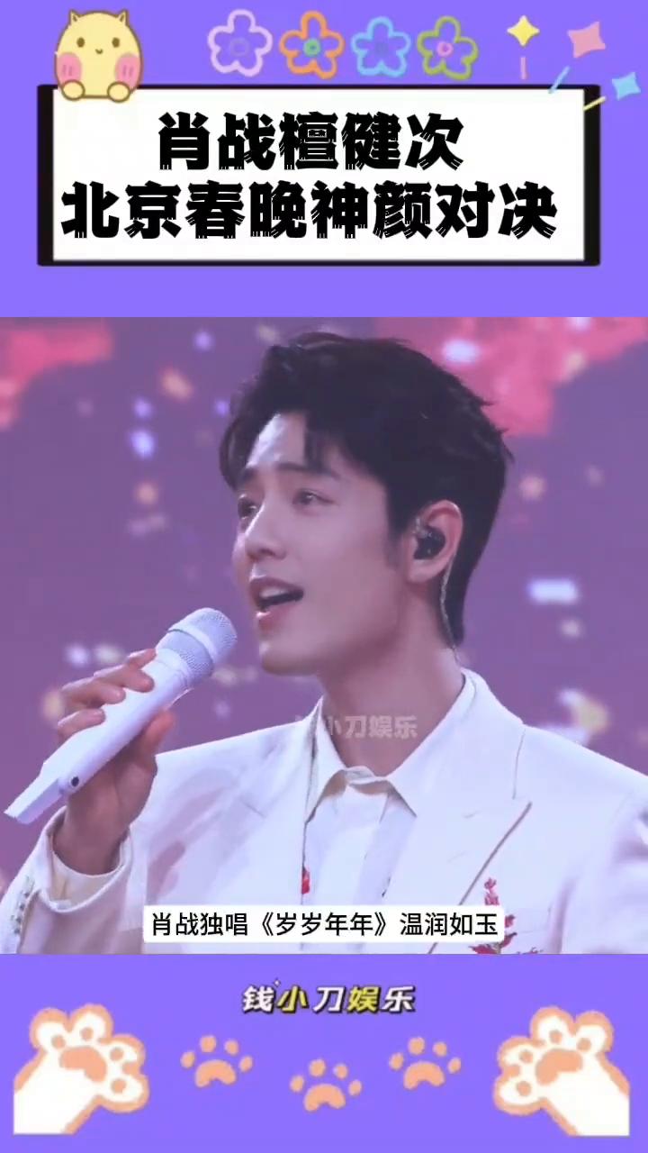 肖战檀健次北京春晚神颜对决。 钱小刀娱乐。 北京台春晚双神颜对决,肖战檀健次杀疯了。北京台春晚这两位直接把颜值与实力焊死在舞台上。 檀健次开场秀《心意的佐证》火力全开,唱跳卡点丝滑,光影特效拉满,舞台王者气场直接点燃全场。肖战独唱《岁岁年年》温润如玉,纯白刺绣西装搭配围棋国风舞台,歌声治愈又深情,满是岁月静好的氛围感。一个是唱跳俱佳的舞台燃核,一个是深情款款的国风贵公子。两种极致魅力,你被谁狠狠拿捏了?