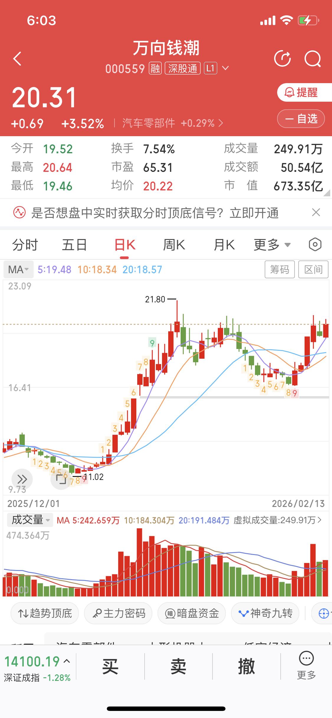2月23日开盘在即,梳理人形机器人板块发现几只票各有业务。 长盈精密,主要搞精密电子零组件研发、生产和销售,像手机、电脑等电子产品的精密结构件它都有涉及,也在向机器人等新兴领域拓展。 万向钱潮专注汽车零部件,像万向节、减震器等产品在行业内挺有名,在机器人领域可能会提供一些基础零部件。 三花智控是全球制冷控制元器件龙头,做制冷空调电器零部件等,也在布局机器人热管理系统。 五洲新春主营轴承、精密机械零部件等,为机器人提供关键零部件。这几只票在人形机器人领域都有各自的布局,值得关注。 这几只票都是很有标识度的票,万向和五州甚至要突破前高了,加上春晚人形机器人表演,下周重点看人形机器人[泣不成声]