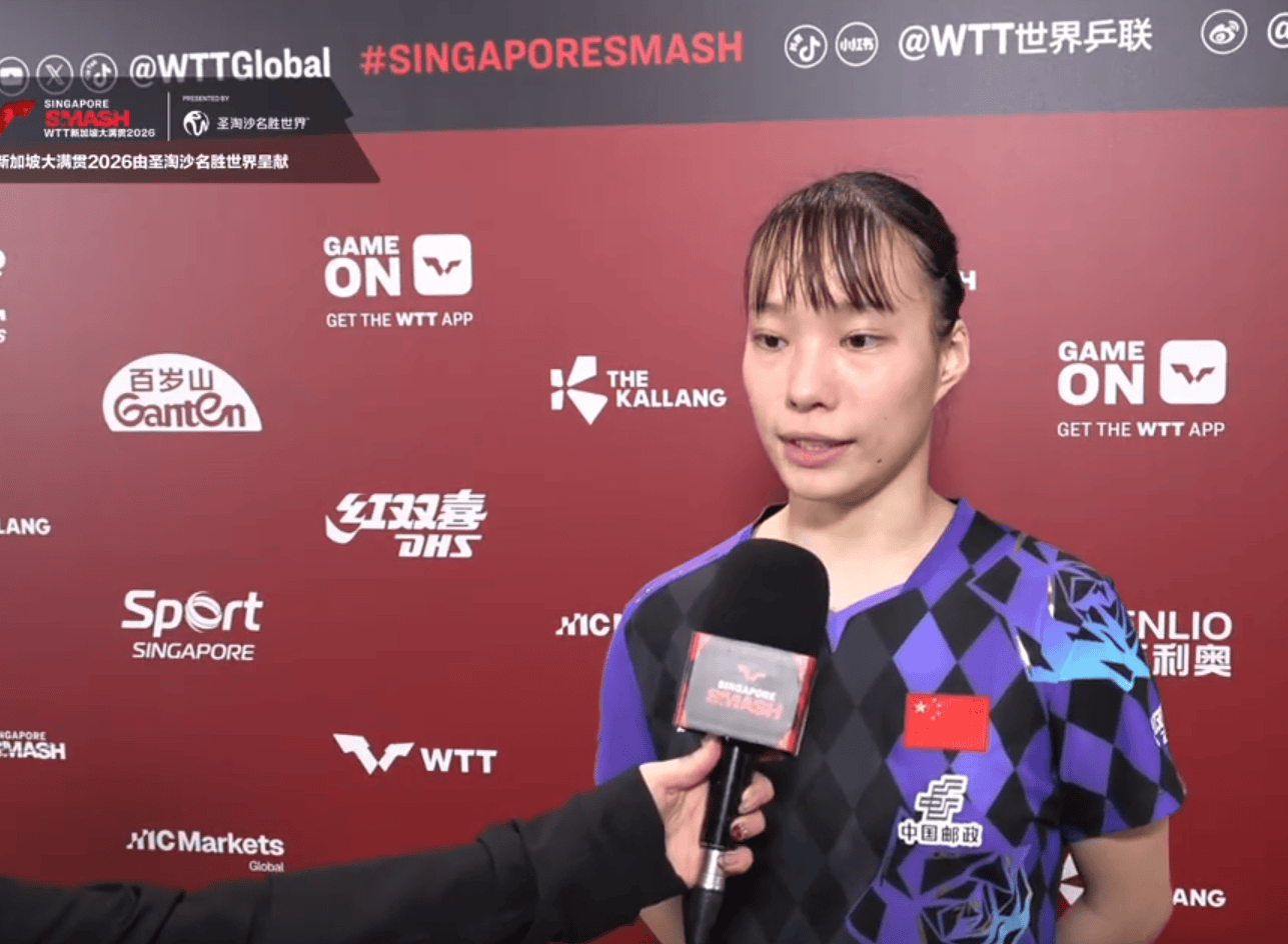 虎扑02月23日讯WTT新加坡大满贯一场女单64强赛刚刚结束,石洵瑶3-0战胜意大利选手蒙法迪尼,晋级下一轮。赛后她接受了采访。