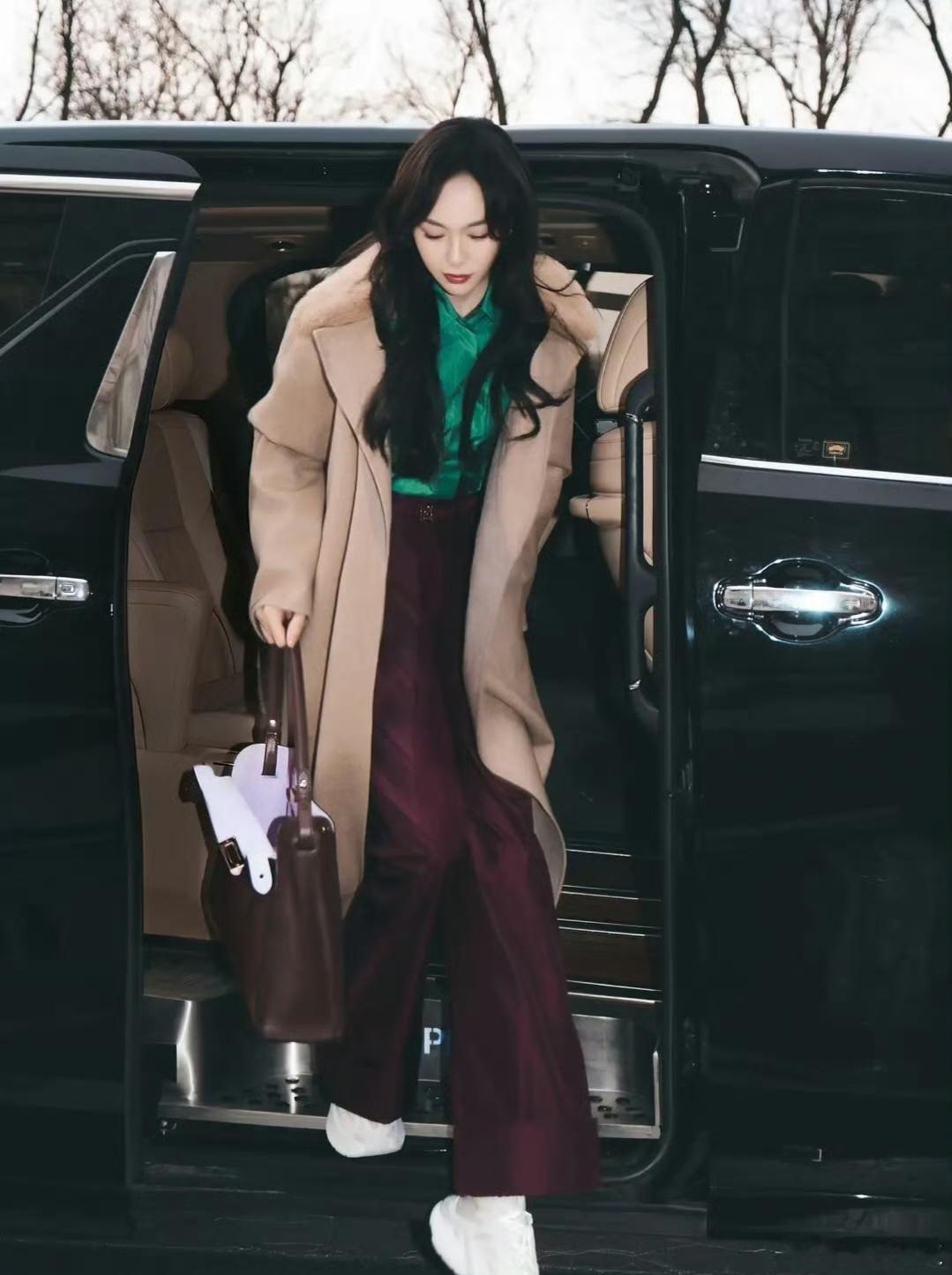 唐嫣老钱风造型唐嫣米兰时装周出发造型:是棕绿拼色西装精准诠释了“老钱风”精髓,松