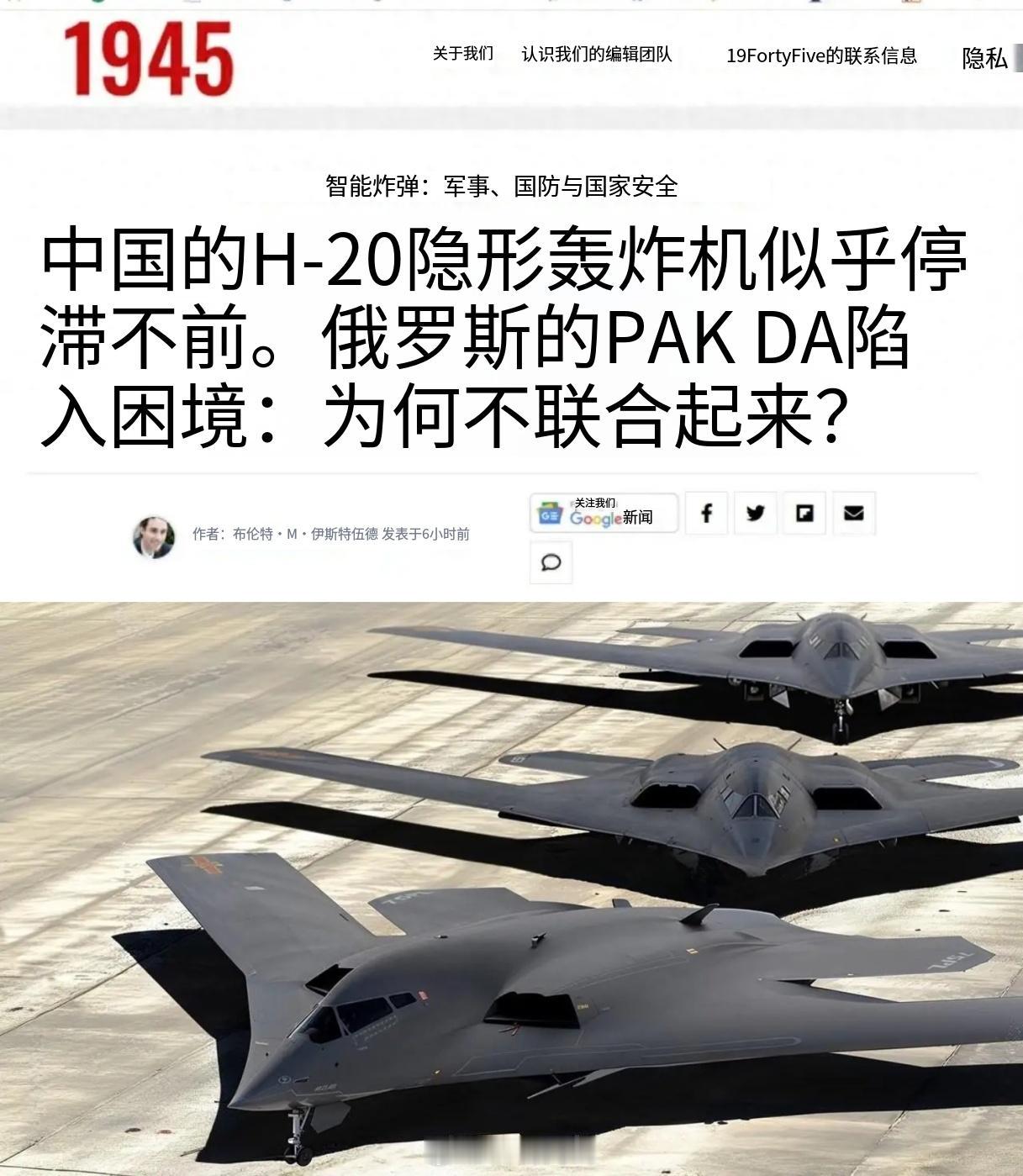 美媒可真积极,他们认为轰-20研制陷入停滞,同时俄罗斯PAK DA下代隐形战略轰炸机也陷入困境。既然两款机型都没有大的进展,那么还不如中俄联合起来研制隐形战略轰炸机,这样就可以做到资源整合互补。当然美国没安什么好心,无非想看看轰-20到底研制到什么程度,会不会像六代机一样现身就领先一代。