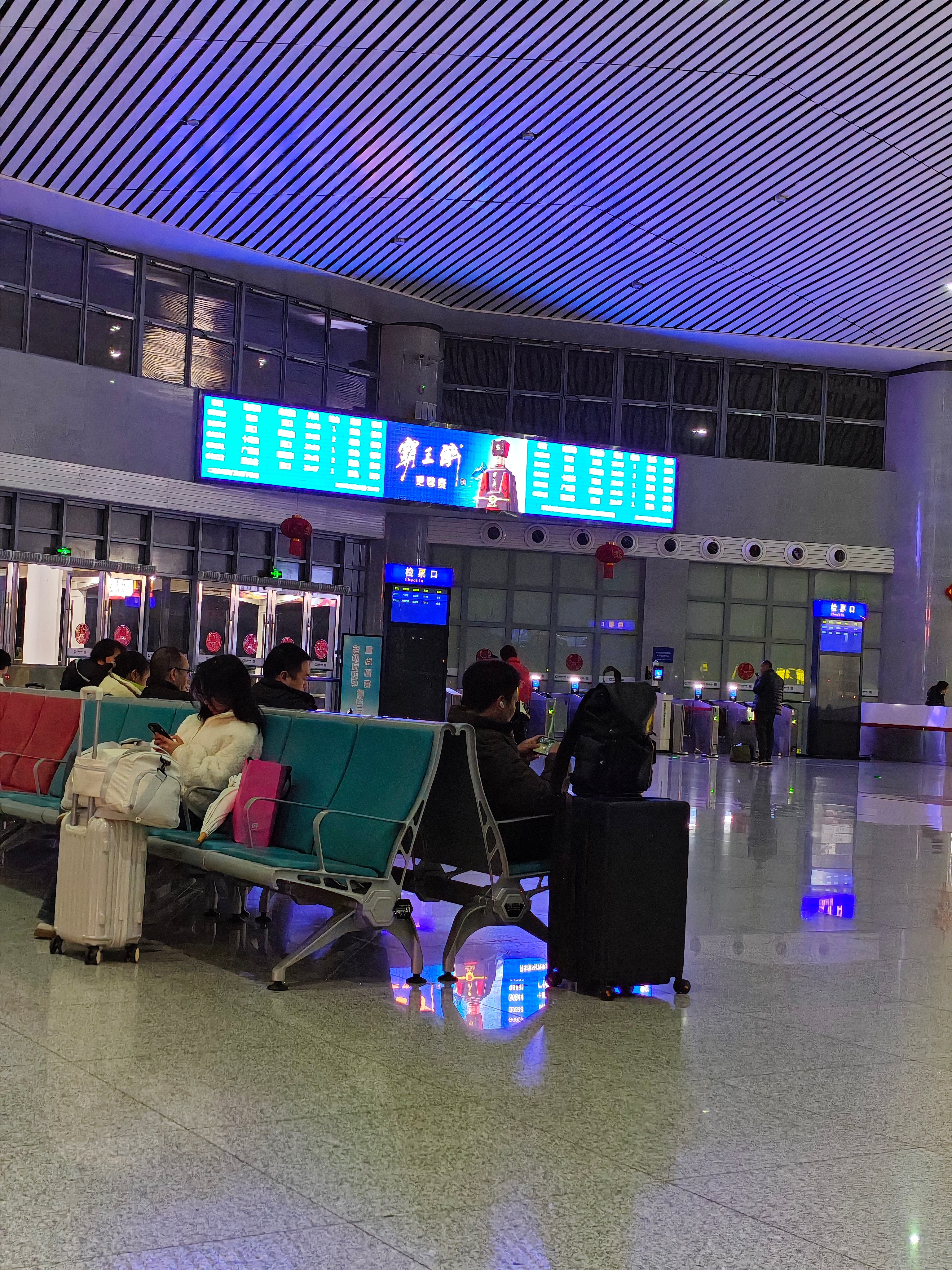 下着雨,候车中,怕赶不到车,路上堵,提前到车站了!先干饭,老爸从宴席打包的!马上
