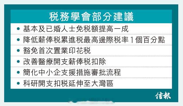德勤中國香港《財政預算案》小組主管合夥人尹佩儀認為,中產交稅多但福利少,且個人免稅額多年沒有調整,建議提高基本免稅額一成和提供稅務寬減(最高5000元),紓緩中產財務壓力,「在有限資源下把資源適量投放給中產」。
