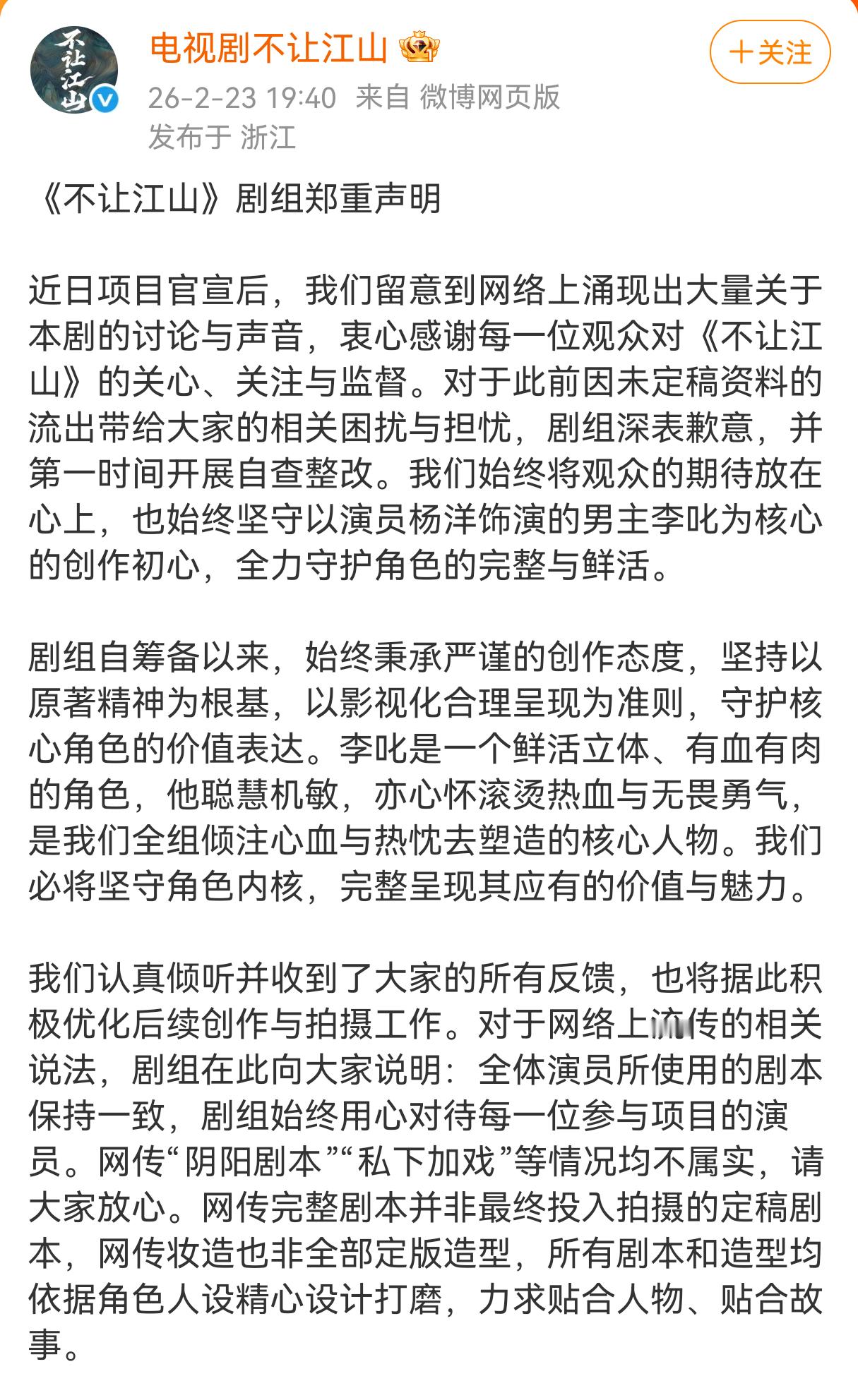 杨洋《不让江山》剧组发声明了,称阴阳合同和私下加戏为不实信息,不过评论区杨洋粉丝