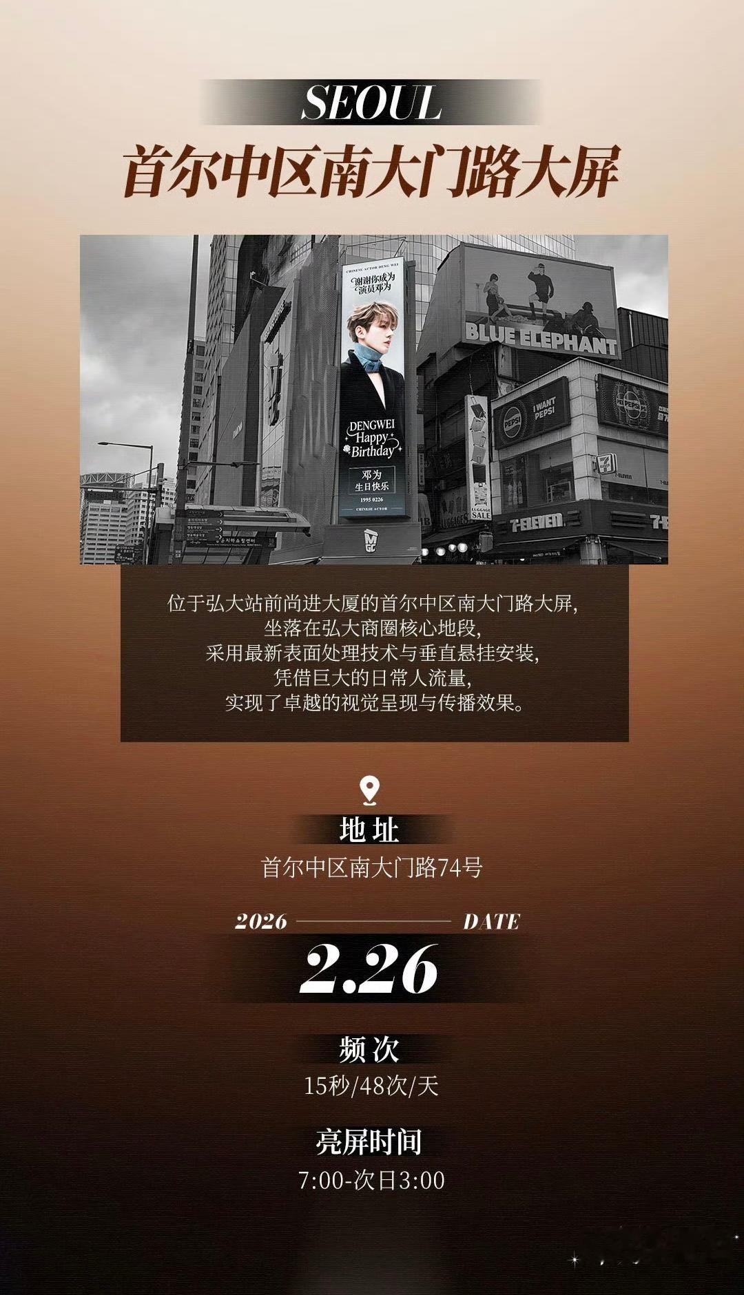 邓为生日粉丝还准备了海内外的巨幕应援,美国纽约时代广场,韩国首尔南大门,香港旺角