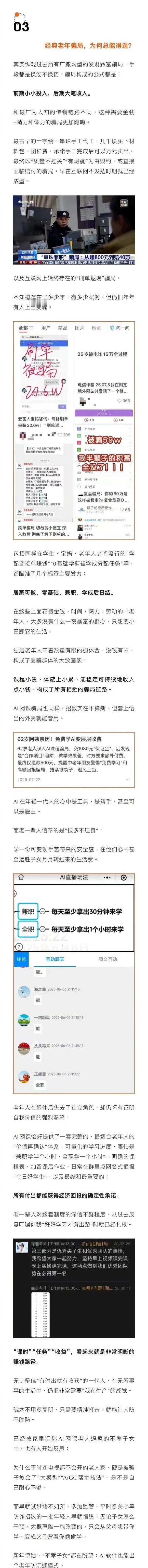 老年人对AI的热情,本质是对社会连接的渴望与自我实现的追寻。骗局的高明之处,在于将这种正当需求扭曲为暴富幻觉。监管的滞后与平台的放任,共同构成了这场“合法收割”的温床。 科技向善不应是口号。若连最需要关怀的群体都成为技术红利的反面教材,那么所谓的AI革命,不过是场精致的残酷游戏。是时候为狂奔的技术套上伦理缰绳了。