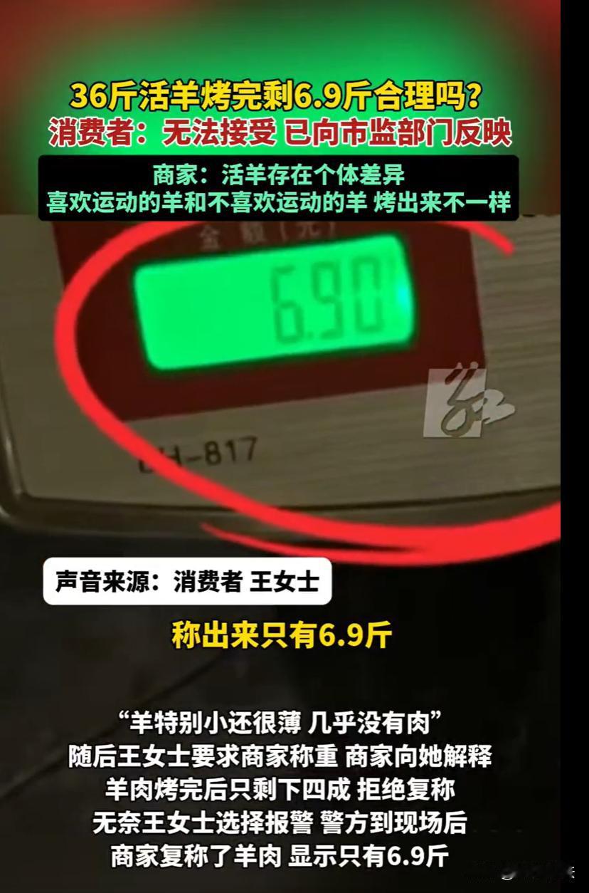 重庆,一女子带着家人奔着“现选现烤”去了家烤全羊店,挑了只36斤的活羊,还特意在羊腿上绑了红绳做记号,花掉1188元。不料,等一个多钟头,烤羊端上来全家人傻眼了,那只羊干瘪瘪趴在那儿,又小又薄,筷子戳进去尽是骨头,肉没见几口。女子当场要求复秤,店员死活不让,急了她只好报警。警方一到场,店家才老实把羊放上秤:6.9斤。面对质问,店家就甩一句“活羊有个体差异,这只多半是不喜欢吃草、不喜欢运动,烤干就缩水”,女子气笑了:“36斤缩成6.9斤,拿这说法糊弄人?” 大年三十晚上,王女士本来是想带着一家人开开心心吃顿好的,特意选了一家比较知名的馆子,点了个1188元的套餐。 这个套餐是“活羊现选”,就是让你自己去挑羊,称完重,然后再烤。 王女士当时挑了一只,商家当面称了是36斤,她看着羊被牵走宰杀,还在羊腿上做了记号,想着这样肯定靠谱。 等了一个来小时,烤全羊端上来了。 王女士一看,心里就咯噔一下,这羊也太小了,盘子边上空出一大圈,羊身上几乎没肉,薄薄一层皮包着骨头,看着像只没长大的小羊羔。 她当时就嘀咕,36斤的活羊,烤完不至于缩成这副模样吧? 一家人都觉得不对劲,这哪儿是吃烤全羊,简直像在啃骨头架子。 王女士提出要复称,看看这烤好的羊到底多重。 商家一听就不乐意了,说烤全羊都是这样的,烤完水分没了,肉缩了,正常的损耗能剩个四成左右。 王女士不认这个说法,坚持要称。 商家就是不肯,说没这个规矩。 僵持不下,王女士直接报了警。 警方来了,商家这才勉强把羊放上秤,数字一出来,在场的人都愣了,重量才6.9斤。 也就是说,36斤的活羊,烤完就剩6.9斤,这可不是什么四成,连两成都不到。 王女士当时就急了,这不是明摆着坑人吗? 商家这时候改了口,解释说活羊宰杀完,去了内脏、头、蹄子,本来就要去掉一大半,烧烤过程中再流失水分,剩这么多也算正常。 还说活羊个体差异大,有的肥有的瘦,有的羊喜欢运动,有的羊不喜欢运动,有些羊喜欢吃草,有些羊又不喜欢吃草,烤出来效果不一样,王女士这只可能烤得比较干,所以缩得厉害。 王女士根本听不进去,她说,如果烤完只剩这么点,为什么不在选羊的时候说清楚?消费者有知情权,你提前告诉我36斤的羊烤完就剩六七斤,我肯定不会选这么大的,甚至可能就不点这个套餐了。 她觉得商家这是故意隐瞒,利用消费者对烤全羊损耗比例的不了解,变相缺斤短两。 这事儿后来被媒体报了,记者去问店家,店家的说法还是那套,活羊称重宰杀,都是消费者确认过的,羊腿上还做了记号,不存在调包。 至于重量差得多,就是因为个体差异和烤得干,话里话外,就是不觉得自己有问题。 对此,王女士无法接受,遂向市监局反映了情况。 有网友调侃说,36斤活羊烤完剩6.9斤,这羊是去参加完减肥营才上的烤架吧?商家嘴里‘个体差异’这四个字,含金量也太高了。 有网友现身说法,俺们老家农村办酒席,一只三十多斤的活羊,杀完去完下水,怎么也得剩个十七八斤,再烤得干也不至于只剩几斤骨头架子。 也有网友替商家琢磨,做餐饮的都知道,活羊宰杀确实会缩水,头蹄内脏一去掉,再加上水分蒸发,四成左右的出肉率在一些瘦羊身上确实有可能。 《民法典》第五百七十七条规定,当事人一方不履行合同义务或者履行合同义务不符合约定的,应当承担继续履行、采取补救措施或者赔偿损失等违约责任。 本案中,王女士花1188元购买36斤活羊烤制,成品仅剩6.9斤,商家以“个体差异”“烤得干”为由解释。 然而,王女士购买的是“烤全羊”成品,而非活羊本身,虽然计价方式按活羊重量计算,但商家最终交付的烤羊重6.9斤,且“几乎无肉,全是皮”,明显不符合消费者对“烤全羊”的正常期待。 若该损耗率远超行业常规标准,则商家交付的商品存在质量瑕疵,构成履约不当。 《消费者权益保护法》第五十五条规定,经营者提供商品有欺诈行为的,应“退一赔三”。 商家作为专业经营者,明知活羊出肉率和烤制损耗率,却在消费者选羊时未告知“36斤活羊烤完可能不足7斤”这一关键信息,导致王女士基于错误认知作出消费决定。 这种隐瞒核心信息的行为,涉嫌构成欺诈。 商家辩称“个体差异”和“烤得干”等原因导致重量流失,但依据“谁主张谁举证”原则,商家需对此承担举证责任。 例如,商家需提供同一批次羊的出肉率数据、行业损耗标准,或证明已尽到明确告知义务。 然而,商家先是拒绝复称,待警方到场后才称出6.9斤的结果,这一行为反而削弱了其解释的可信度。如果商家无法证明损耗的合理性,应承担不利后果。 综上,王女士可以尝试要求退费并主张三倍赔偿,同时若商家存在计量不规范行为,市监局依法可以对其进行处罚。 对此,您怎么看?