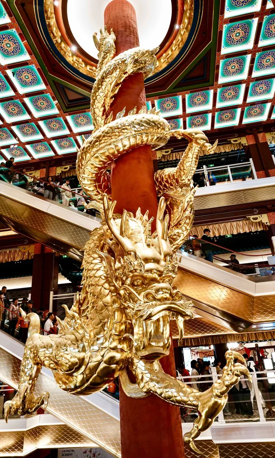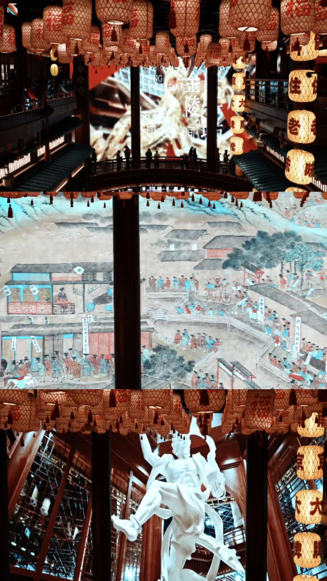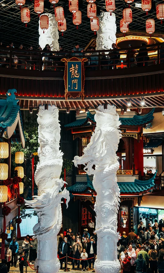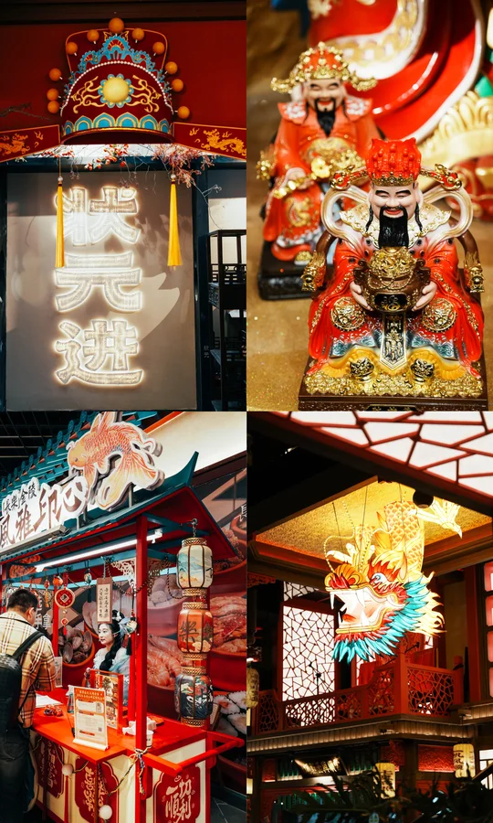 来南京玩,别只去老门东和夫子庙啦 新开的长乐坊 进门就被眼前的场景震撼到了 拍照真的好出片 这里不仅好拍,好逛 还能一键集齐所有好运🍀 学业/财气/运势和平安 · 📷打卡机位: 1⃣️龙门桥(图2.3.5.9.13.18):在3楼魁星阁旁,站在桥上可以拍到魁星阁,也可以拍到入口处滚动的大屏幕,居高临下的视角特别出片 2⃣️次中庭金色蟠龙柱(图1.4);一楼看非常震撼,仰拍蟠龙柱更出片;二楼可以平视龙头部分,可以拍摄人物与蟠龙柱同框 3⃣️中庭回廊/餐饮区观景位(小厨娘/南京大排档旁)(6.7.12):广角可以拍到中庭的蟠龙柱,二龙戏珠和两旁建筑,以及顶部灯笼同框,很震撼 4⃣️入口魁星鳌鱼雕塑(图14):在长乐坊正门,仰拍更好看 5⃣️财神殿(图10.11):金碧辉煌,有金饰,宫灯,祥云纹样,还有文武财神组合,可以摸摸沾沾财运 6⃣️魁星阁(图8):先去考神办事处购·买求学路引,然后从2楼进入,再上到3楼,雕塑超震撼 7⃣️百态罗汉(图16):在4楼,电梯口的位置 · 🧨祈福攻略: ✅魁星阁(2F):拜魁星,带上学生证和准考证拜福气加成更灵验,保佑学业顺利 ✅龙门桥(4F):求学业,可以在龙门桥取功名和悬挂签 ✅财神殿(3F):求财气,绳祈财运,印纳五福 ✅百态罗汉(4F):求运势,佛光点罗,月运昭显 ·