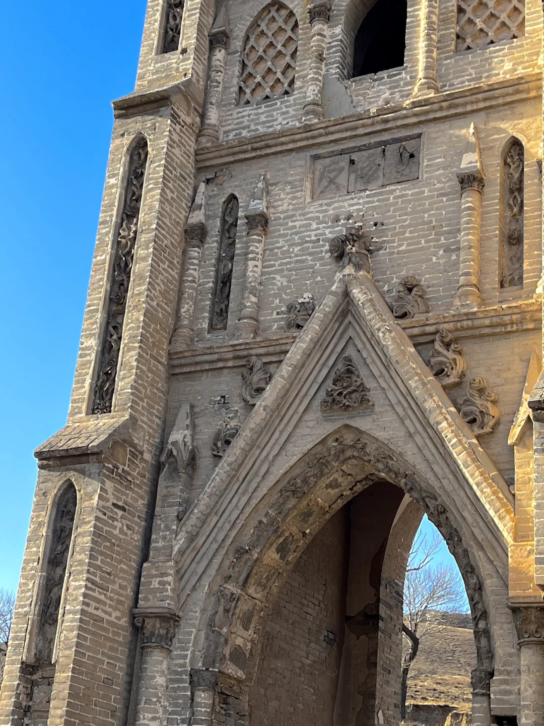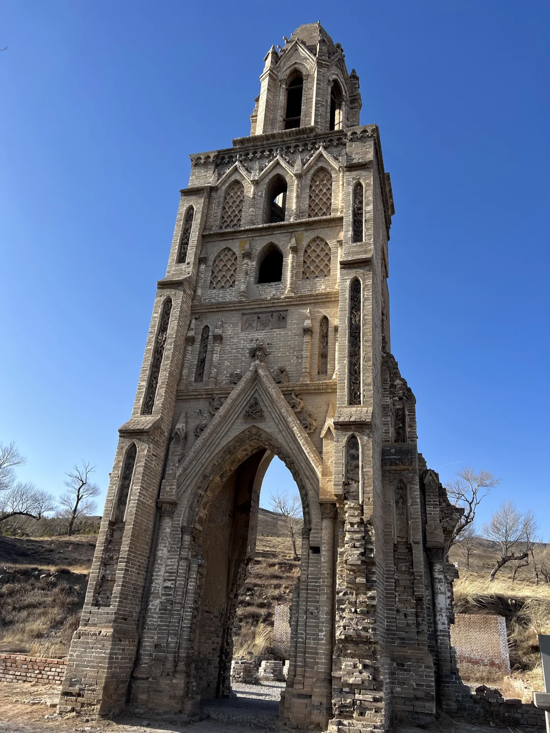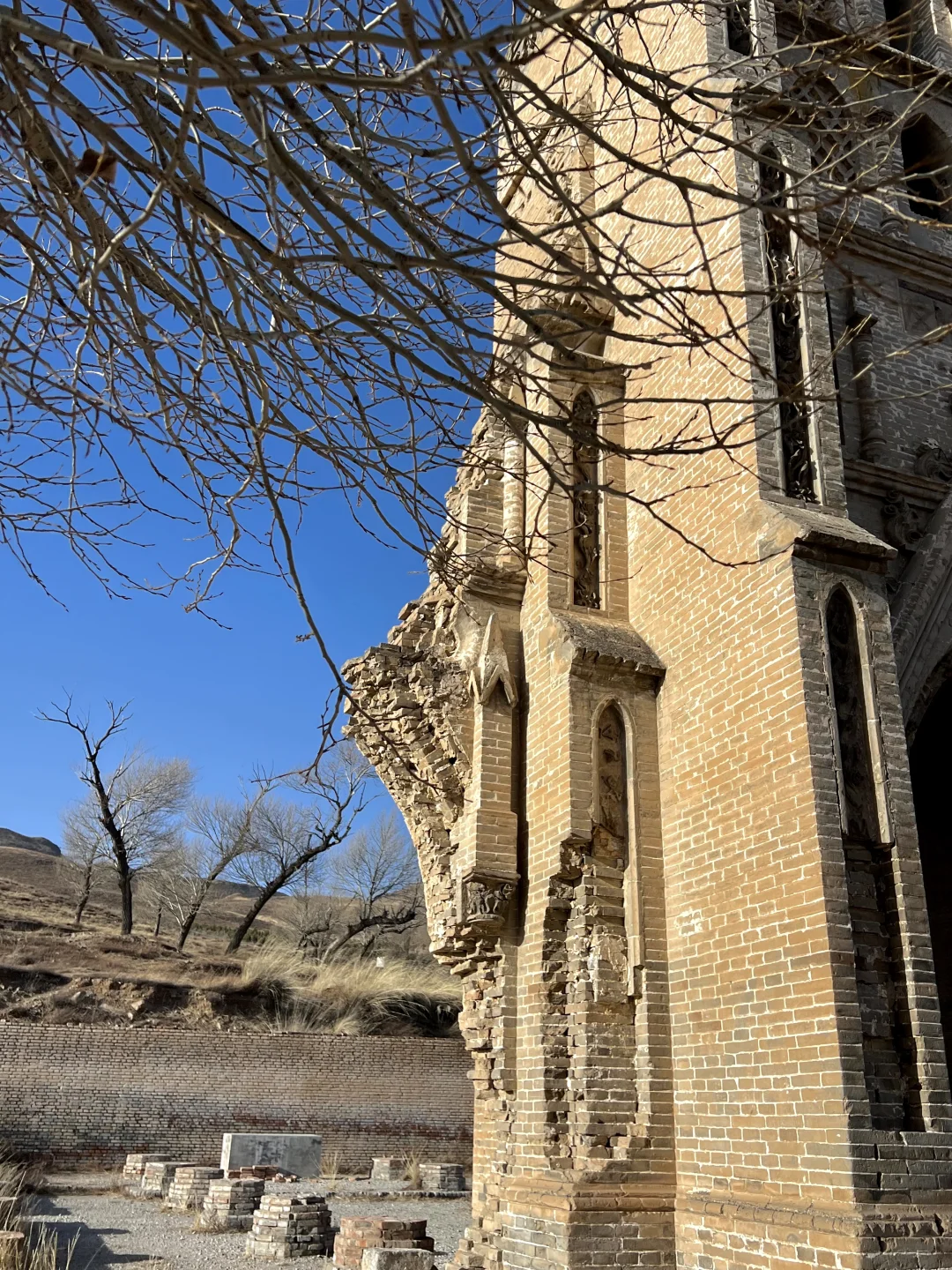 [打卡R]左云县,距离市区车程40多公里,🚗会路过两侧白杨树梧桐树的国道 八台子教堂⛪️是传教士在清朝末年建起来的,后来被义和团拆了,旁边还有活水泉,冬天也不会结冰,很多人去拿桶舀水喝 🔥月华池烽火台,是咱道长嘉靖年间建造的,保留了本来的面目,冬天是大西北的荒凉感十足