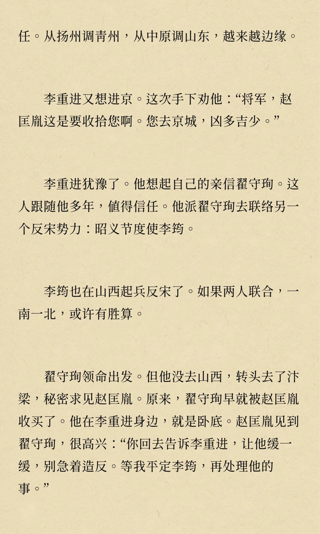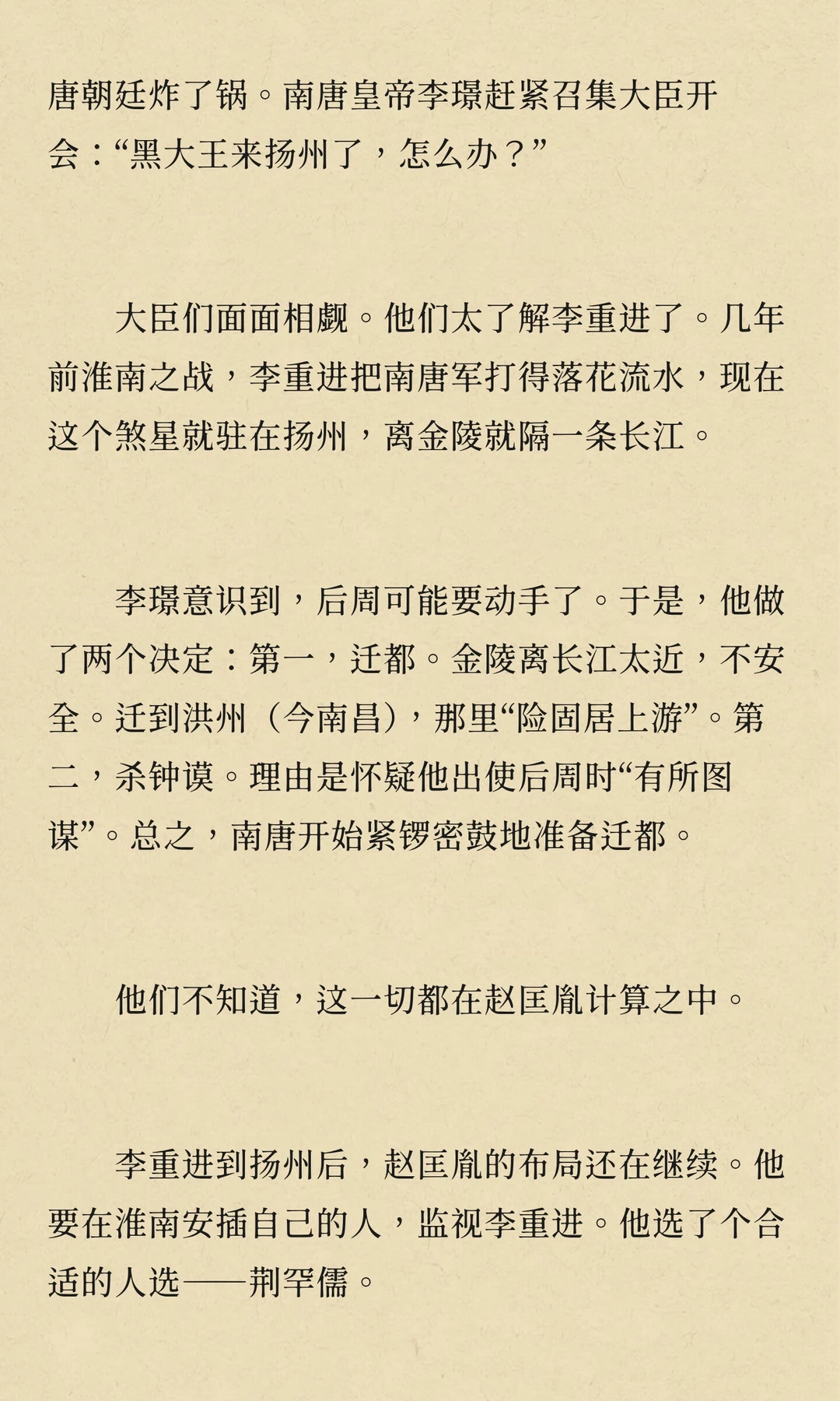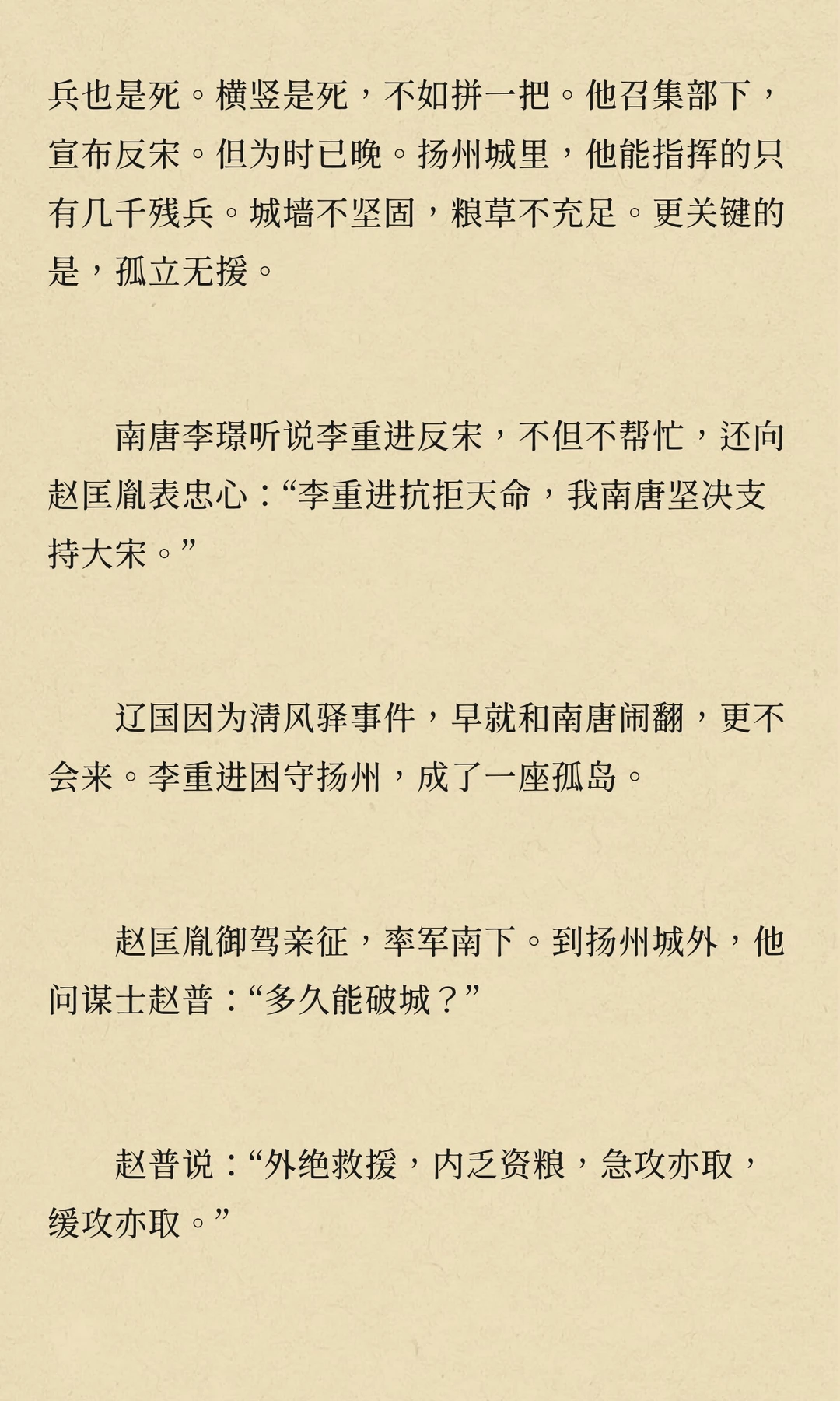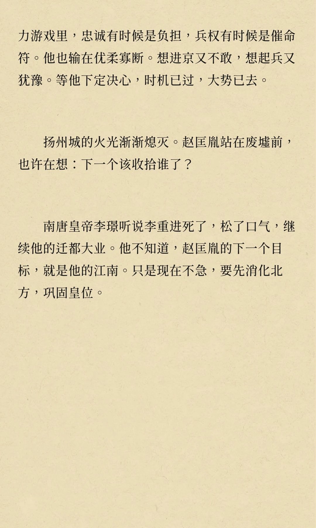 周世宗柴荣病逝,幼子柴宗训即位。赵匡胤通过调任李重进,监视等手段,逐步削弱其权力,为篡位铺路。显德七年,赵匡胤发动“陈桥兵变”,篡位称帝,建立宋朝,李重进最终在扬州兵败自焚。