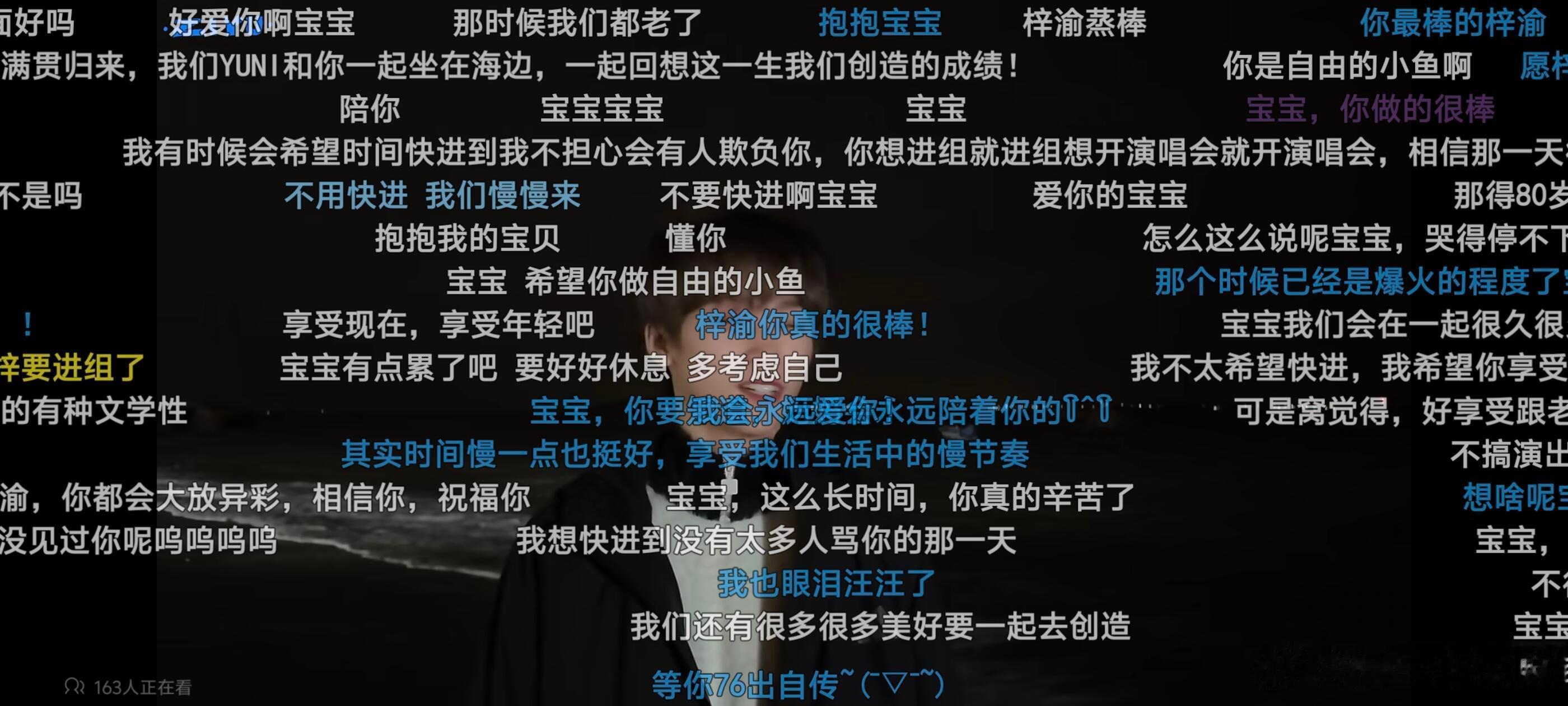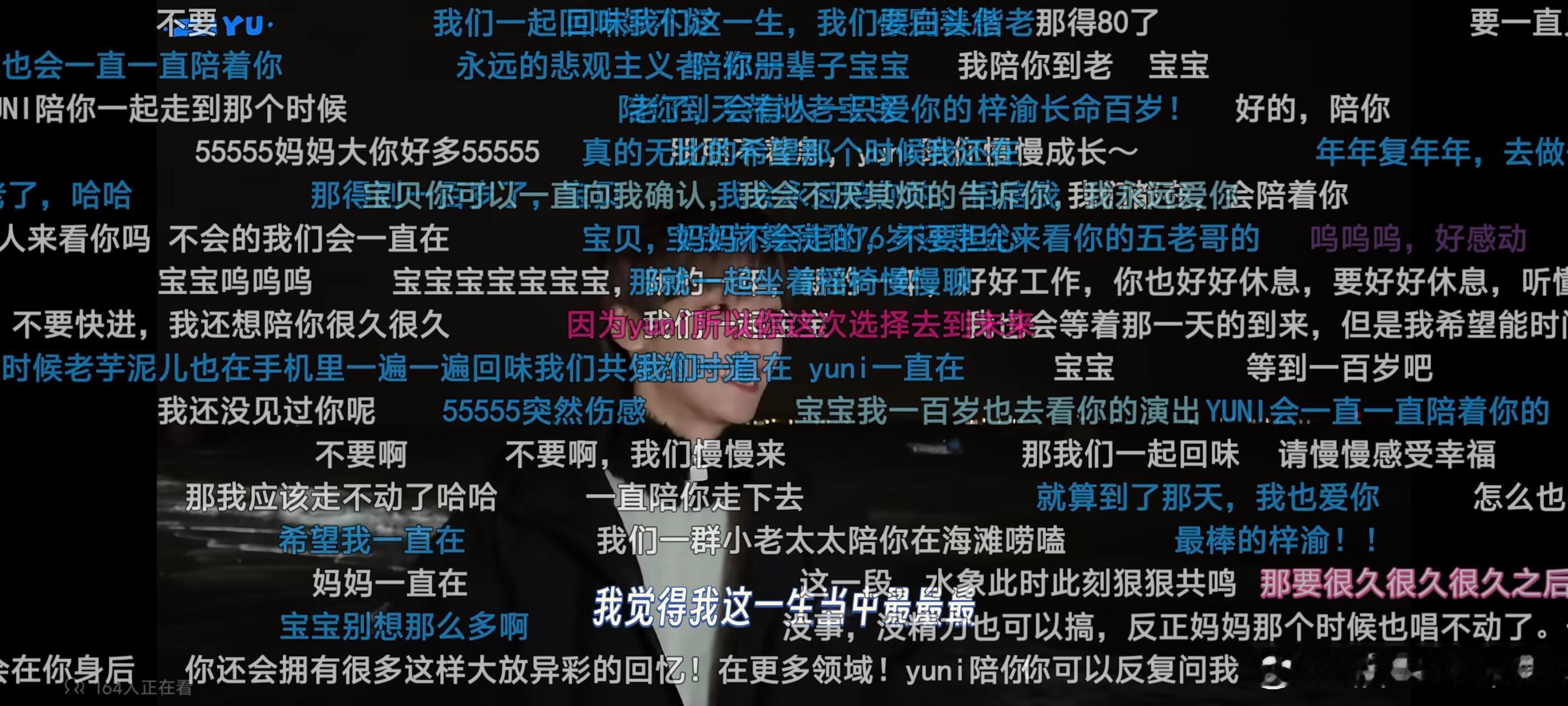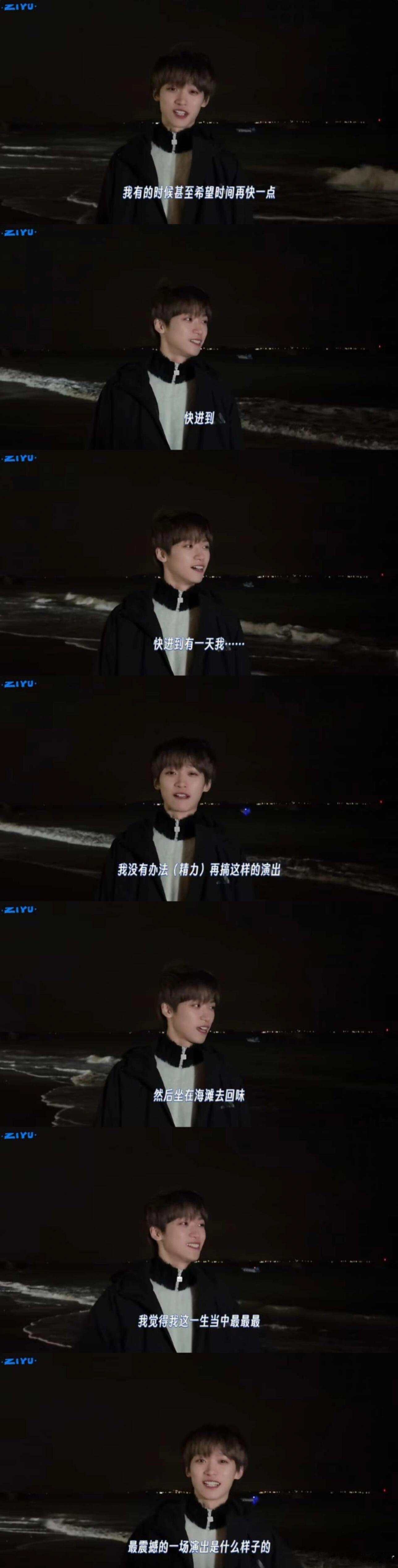 梓渝你甚至不敢直视镜头去说完这一段话吗?梓渝 初看视频的时候被字幕的(精力)误导,还真的就是只想着你在说没有精力以后的事情,但是后面仔细看后,才发现根本没有说精力。你在说完快进后就一直在躲避镜头,措辞了很久,你说快进到有一天你没办法再搞这样的演出,是真的一直在担忧吧,一直在担忧这一天到底什么时候到来?害怕这一天的到来,于是想着就直接到那天吧,让自己知道个结果。这一路走来你经历过太多的人来人往,你周围的人就像面前的海潮起潮落,好像海浪退去是再正常不过的事情。我好想跟你说,别担心,我们会一直陪着你,但好像还是缺少说服力。一个人的话语或许不过有有力量,那我们许多人呢?希望你看到满屏的留言能感受到,梓渝,总有人在爱着你!希望你永远幸福❤️
