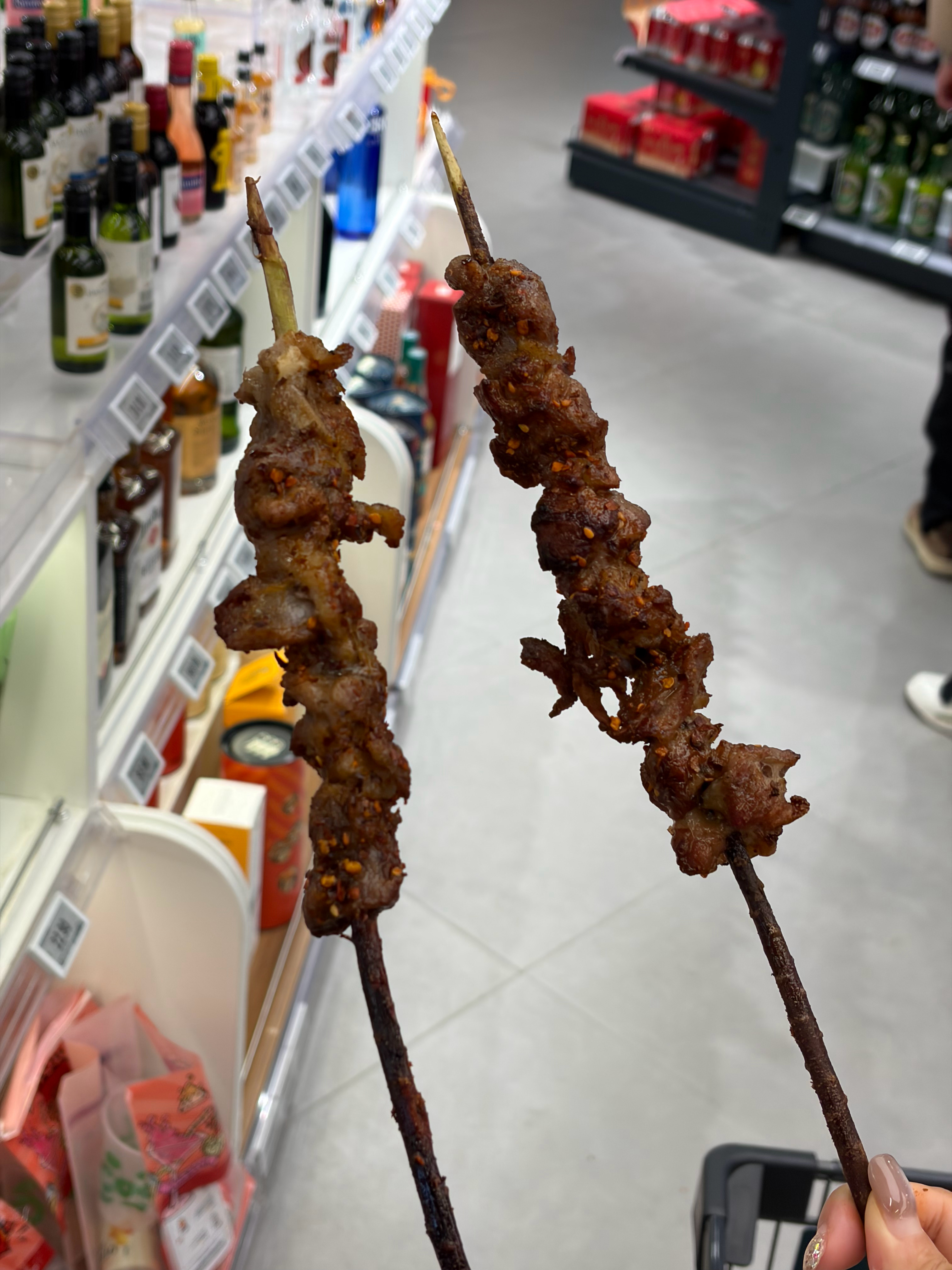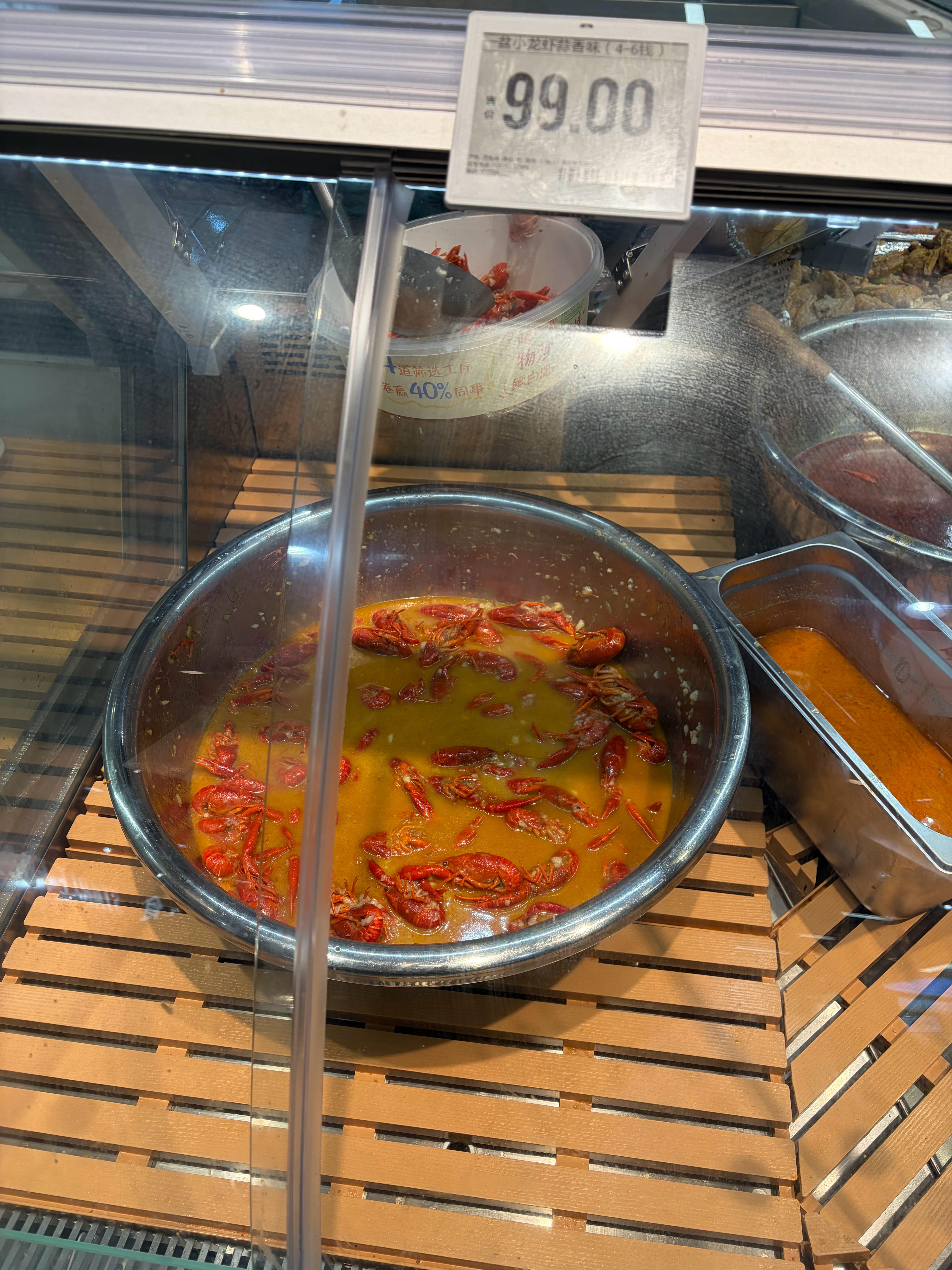 现在超市太厉害了,逛着逛着把晚饭买完了这一大桶小龙虾 99,三斤这大串羊肉串两串