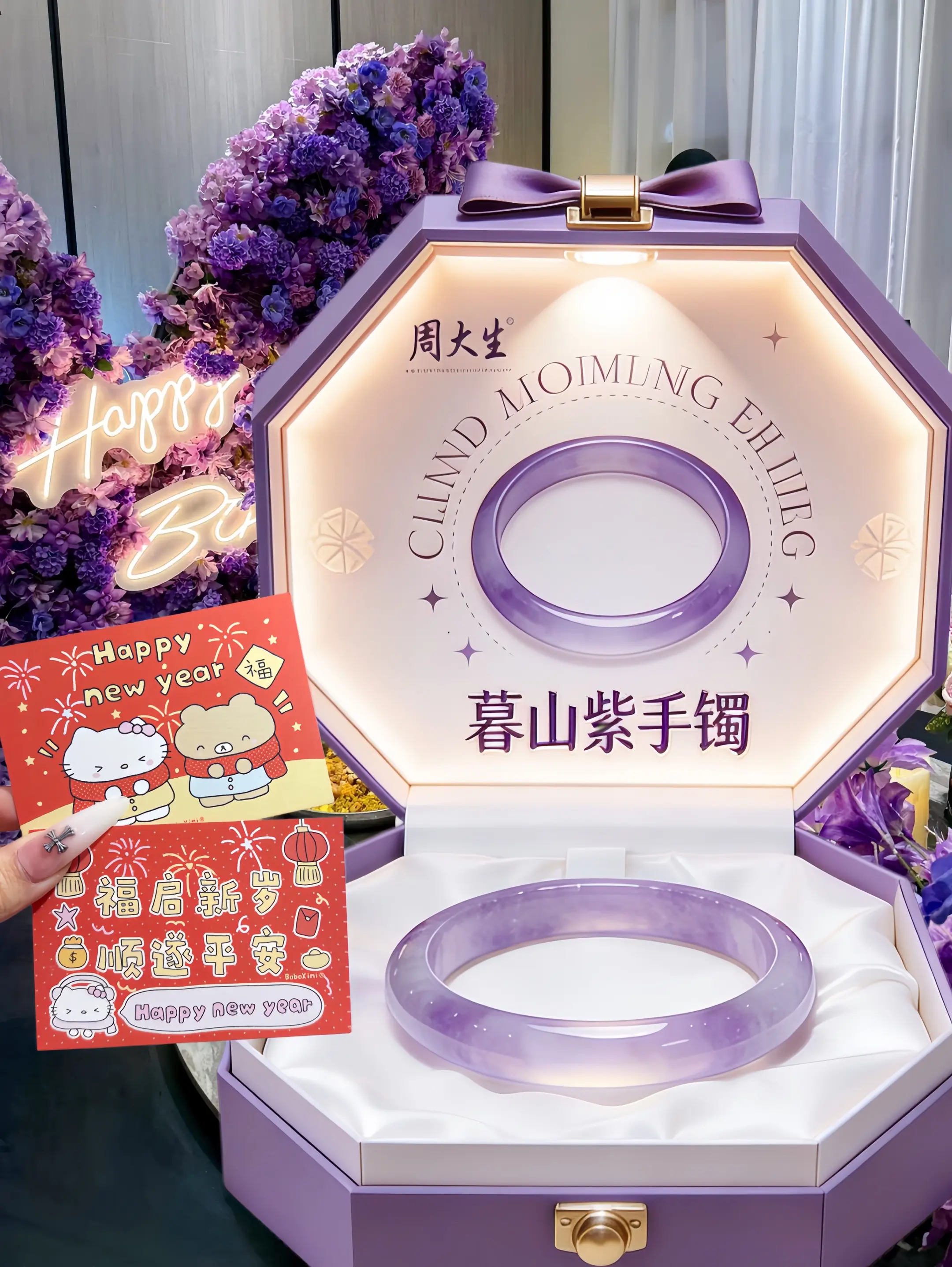 什么都是假的 只有男朋友给我买的周大生暮山紫手镯才是真的