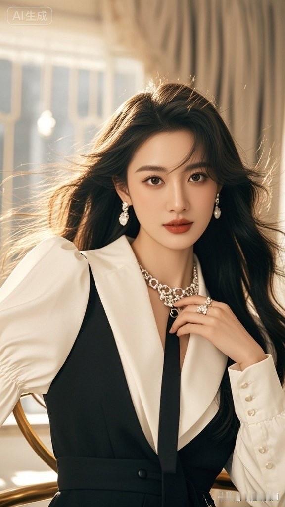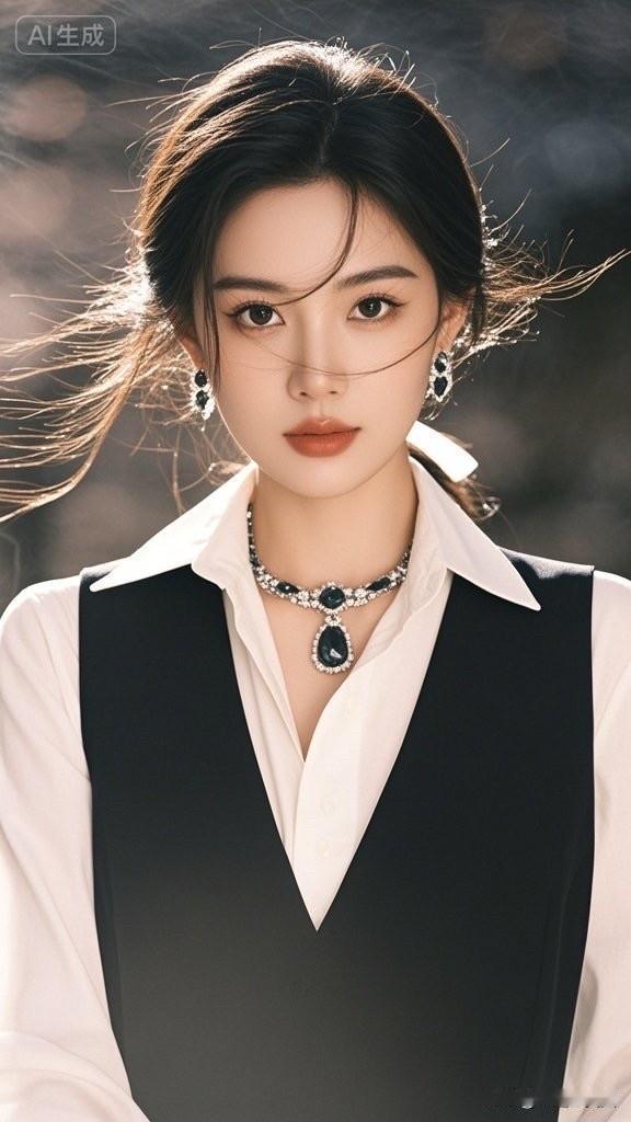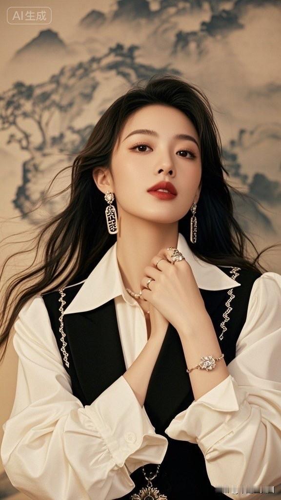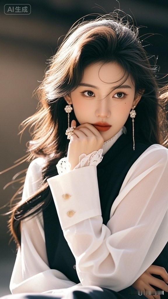 优雅黑发少女,沉思的瞬间,复古耳环点缀,温柔如水。